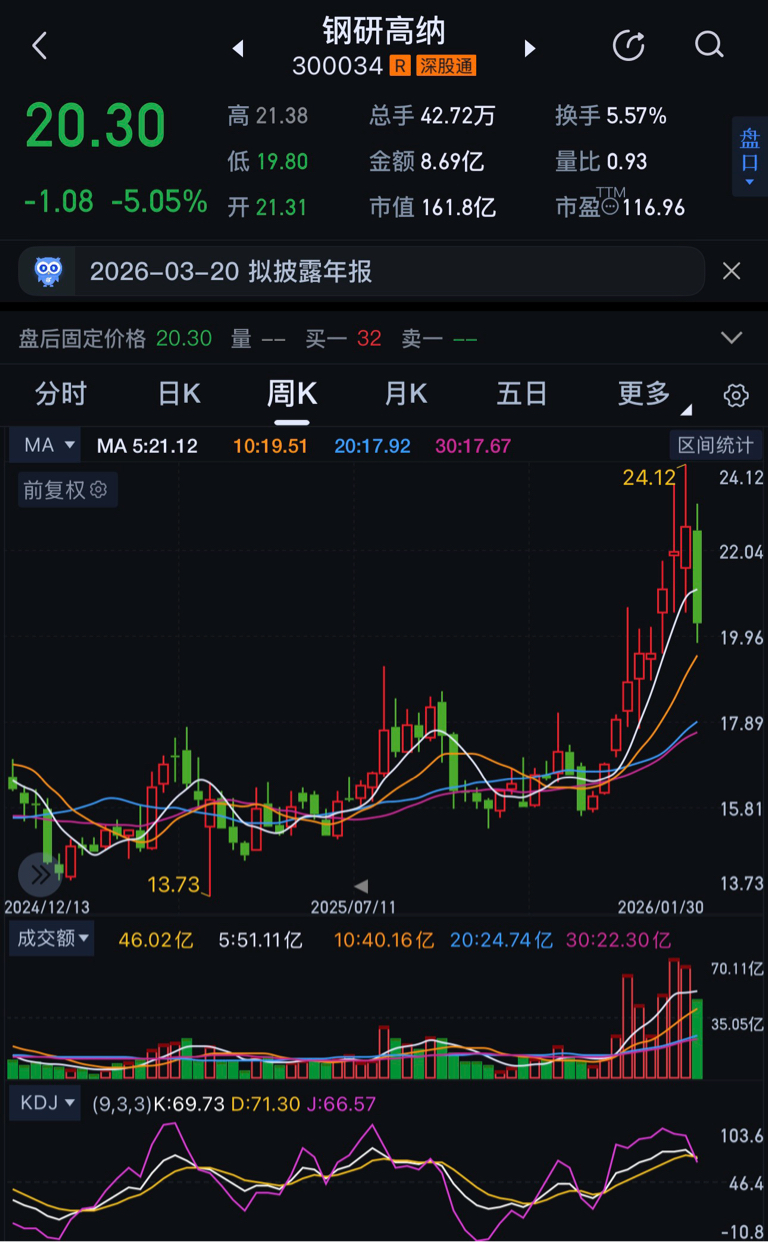 $钢研高纳(SZ300034)$ 周线九连阳得到了修复