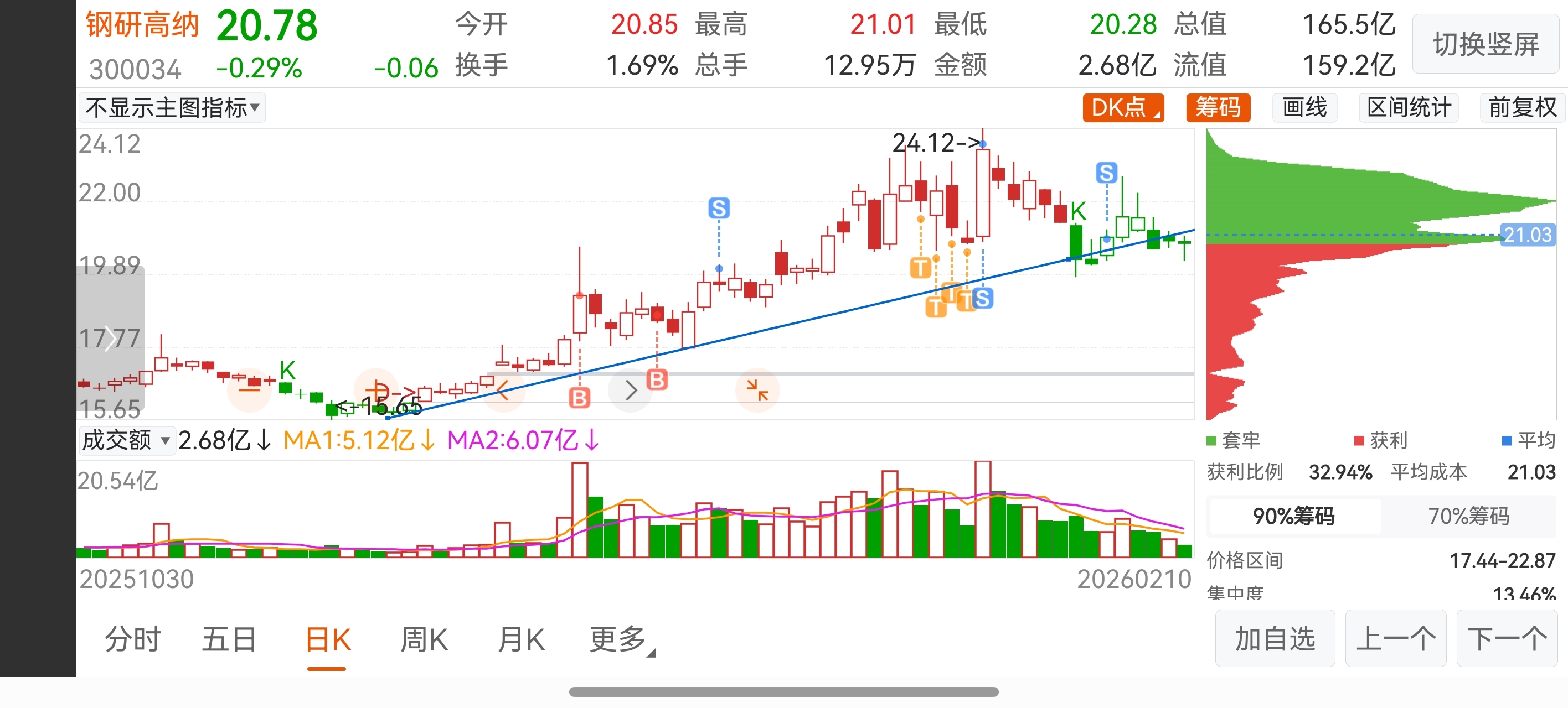 $钢研高纳(SZ300034)$ 今天上不去21看情况出一半