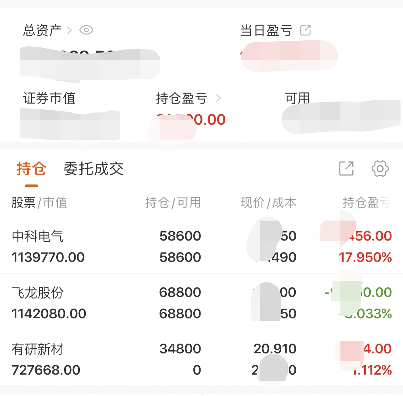 风哥手里持有三只个股。