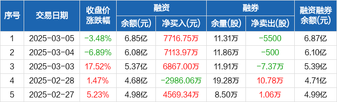 中科电气:融资余额6.85亿元,创历史新高(03-05)