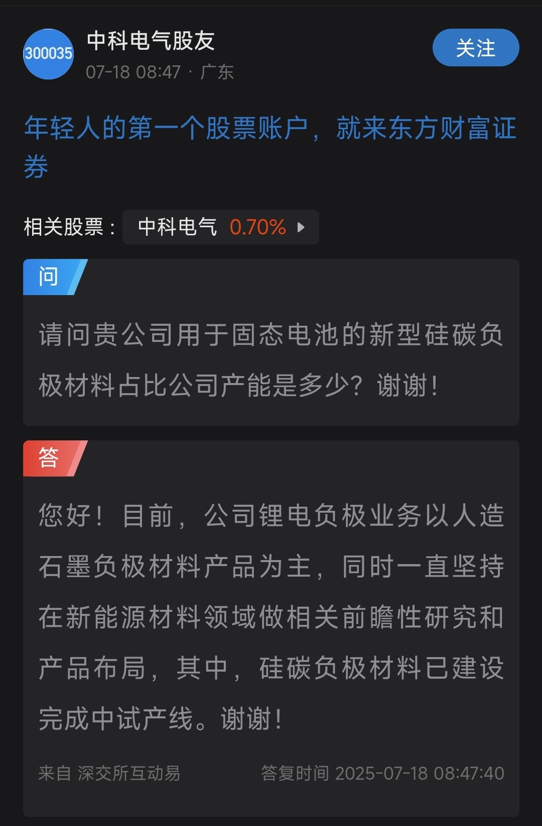 $中科电气(SZ300035)$ 我们的王牌除了稀土还有人造石墨负极材料。明天会如何走?大跌可以补仓吗?