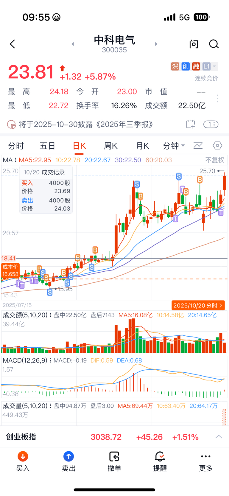 $中科电气(SZ300035)$ 昨天卖出去后后悔了,总感觉今天要突破,立马买回来,第一次判断这么准确呀