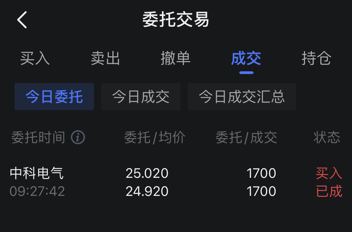 $中科电气(SZ300035)$ 25.02委托,为什么24.92成交?