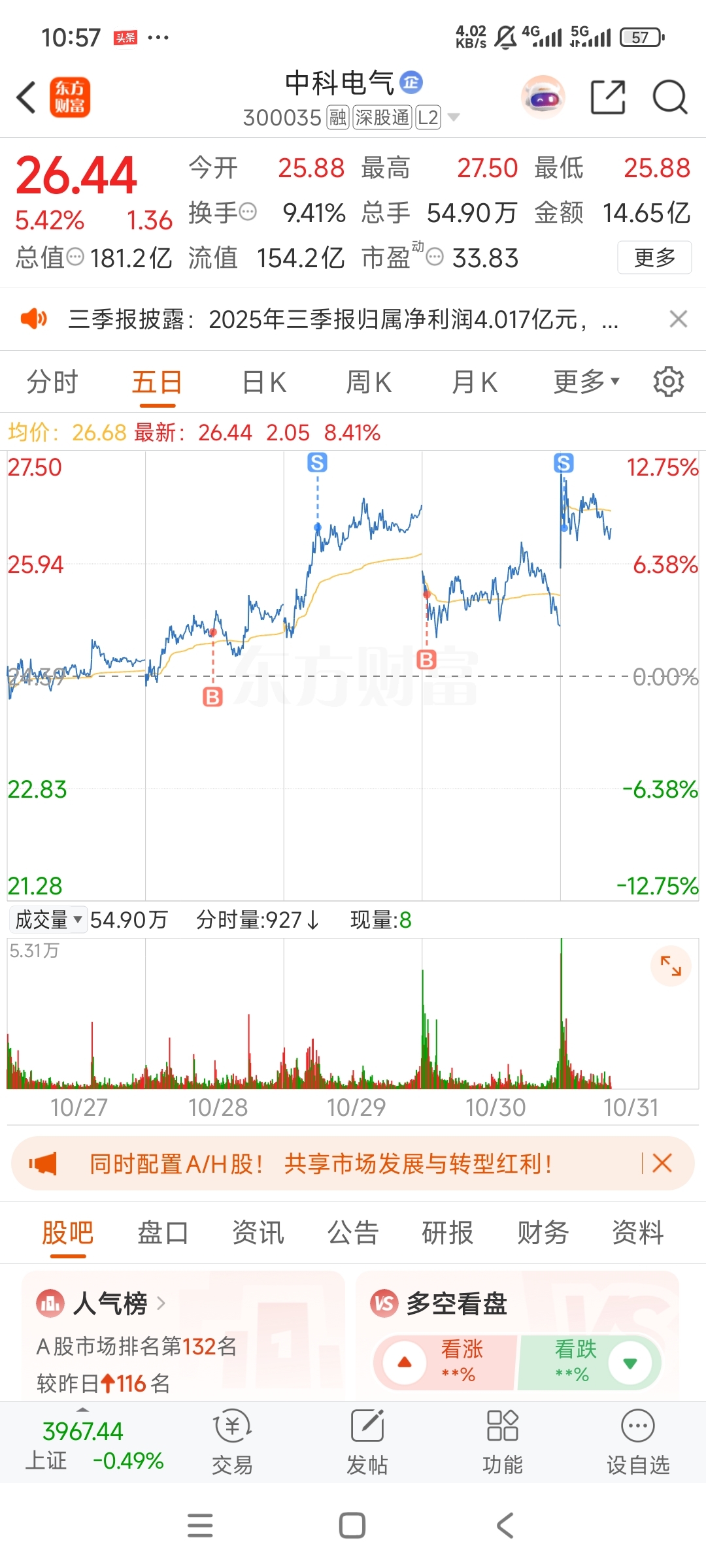 $中科电气(SZ300035)$  拉高出货啦,今天追进去的八成要被套了,祝各位留下的发财