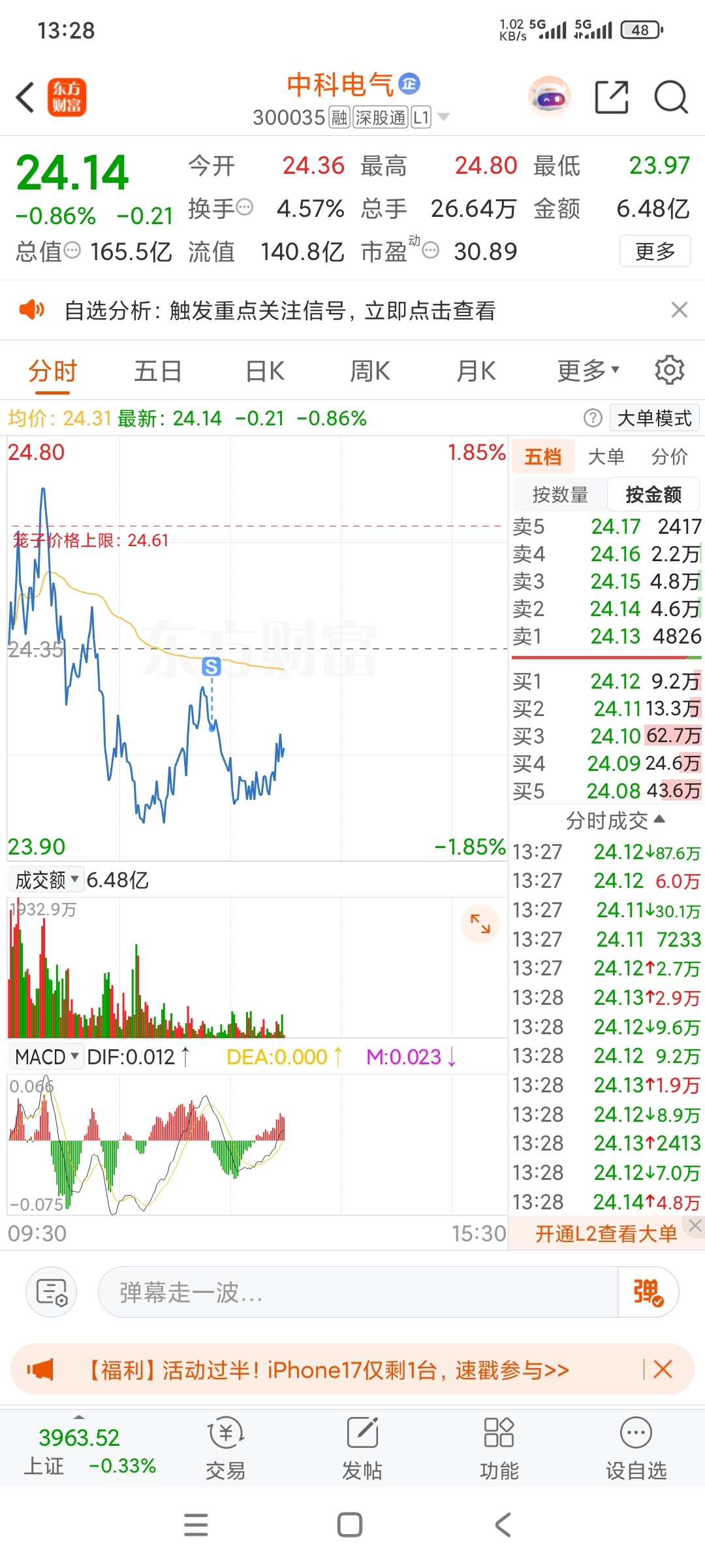 $中科电气(SZ300035)$ 玩不过,走了,留下的发财!