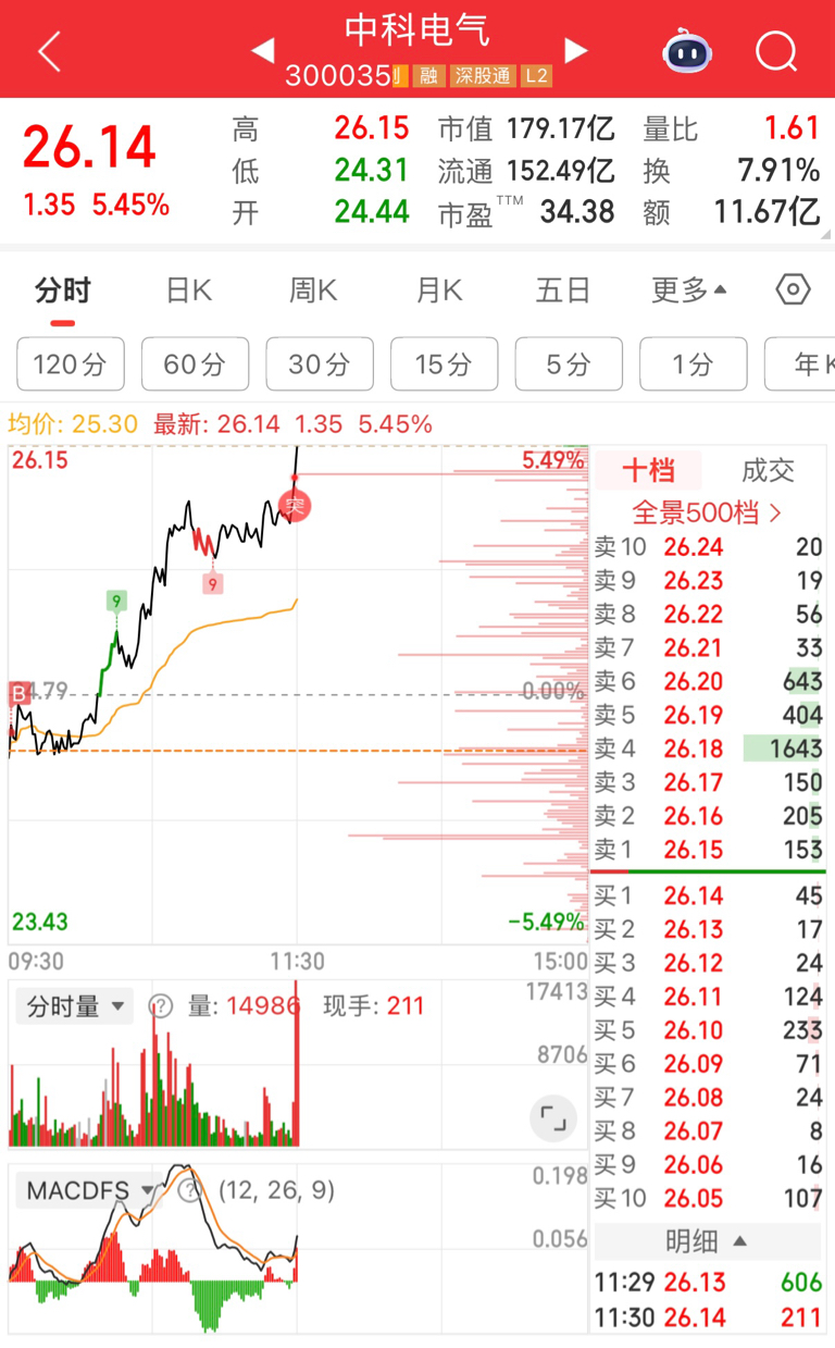 $中科电气(SZ300035)$ 昨天尾盘出了的!今天又进了