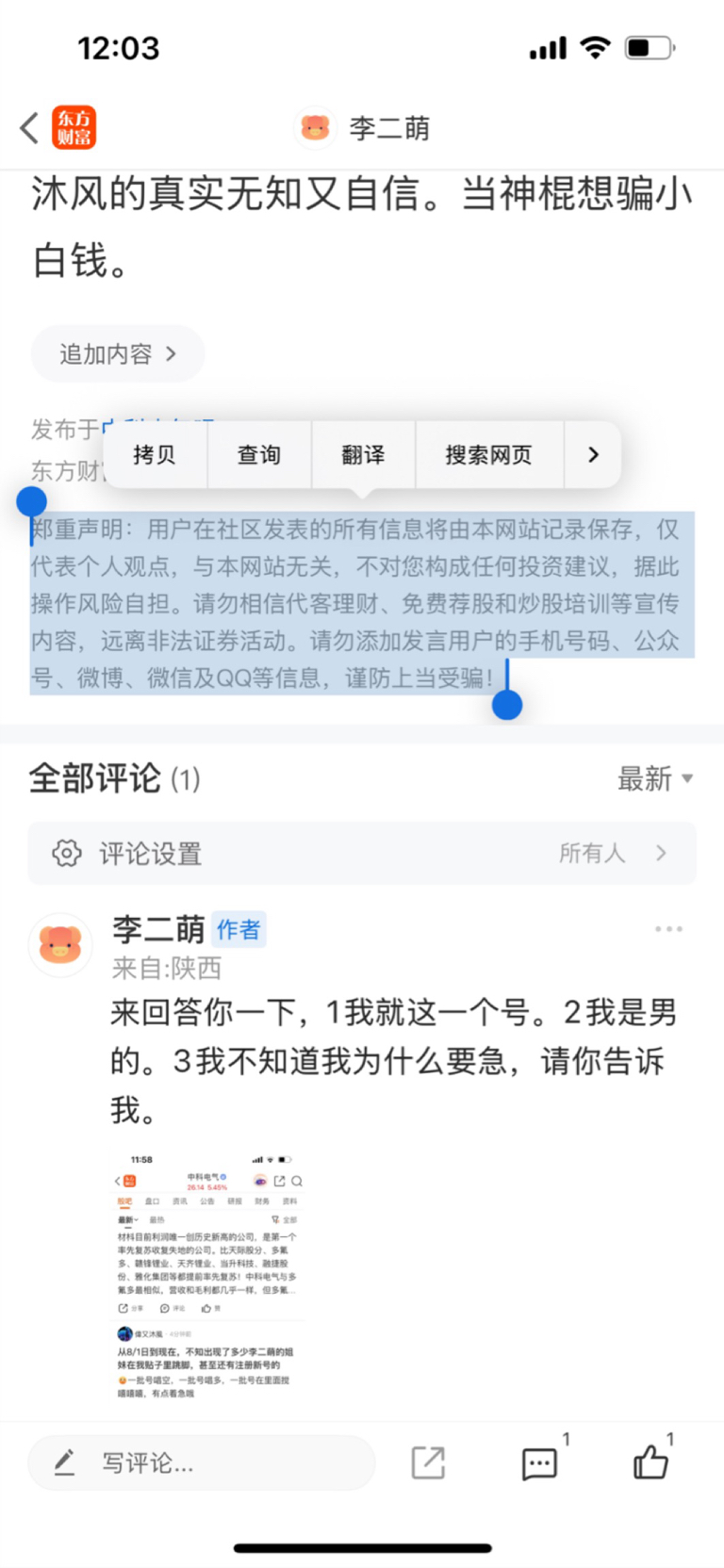温馨提示: 1.根据《证券法》规定,禁止编造、传播虚假信息或者误导性信息,扰乱证券市场;2.用户在本社区发表的所有资料、言论等仅代表个人观点,与本网站立场无关,不对您构成任何投资建议。用户应基于自己的独立判断,自行决定证券投资并承担相应风险。《东方财富社区管理规定》