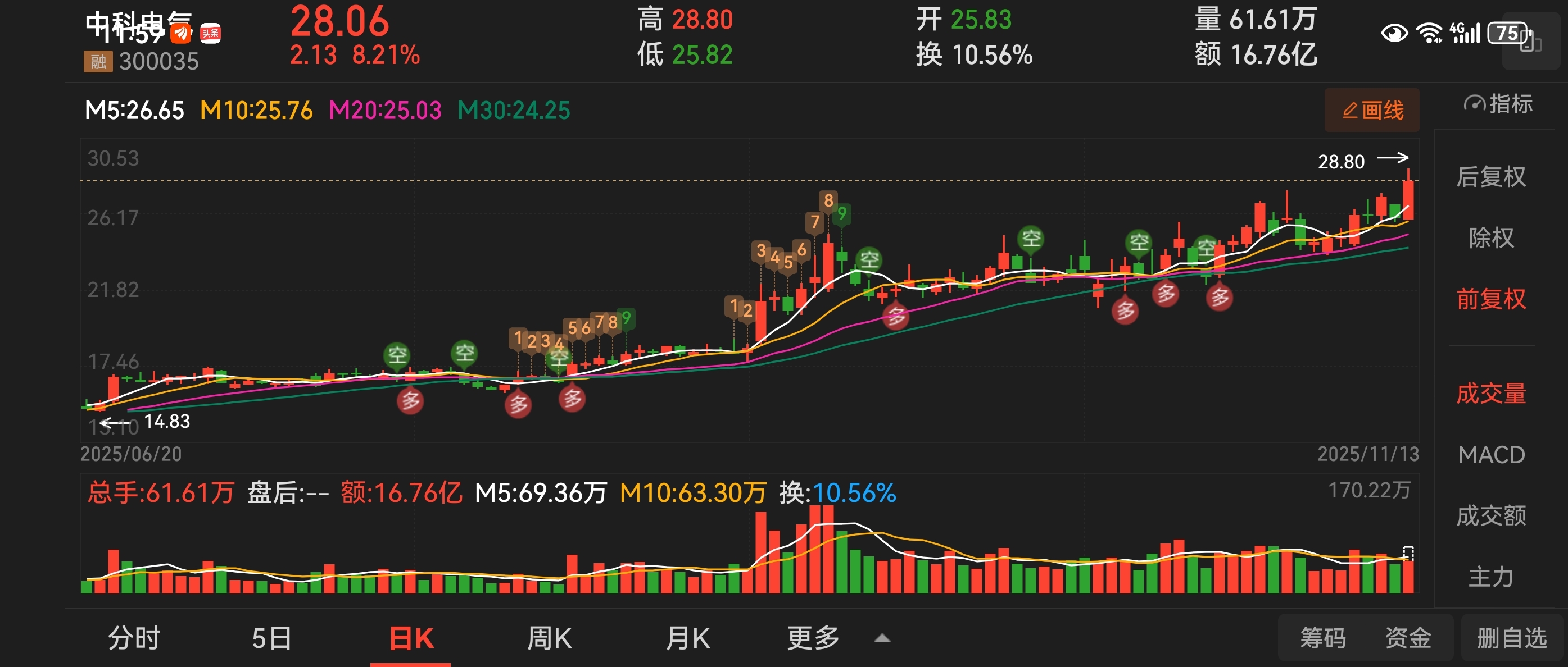 11.10分享中科电气,今日反转走强!继续看好分享经验不构成投资建议