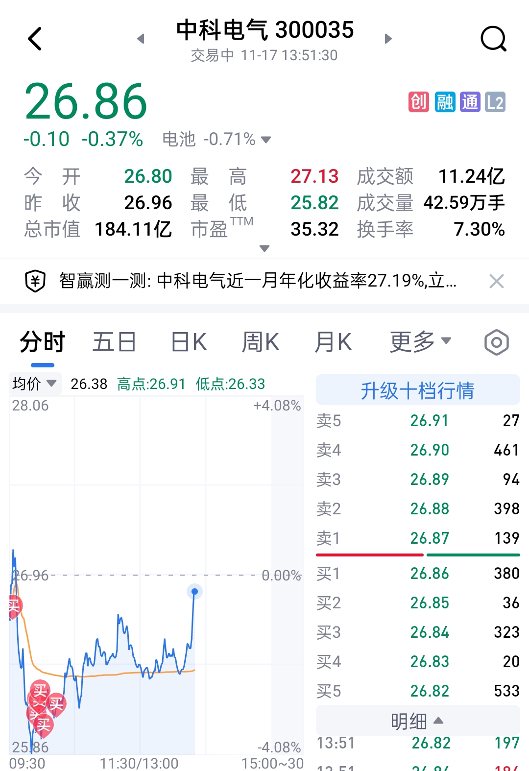 $中科电气(SZ300035)$ 难道 买对了?