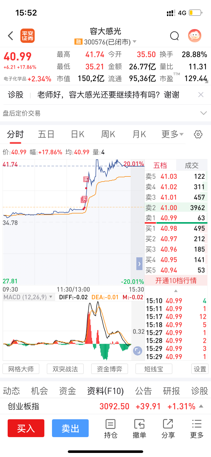 今日成功预测容大感光上涨部位,中科电气做t跑出,打败量化的只能是针对量化的应对程
