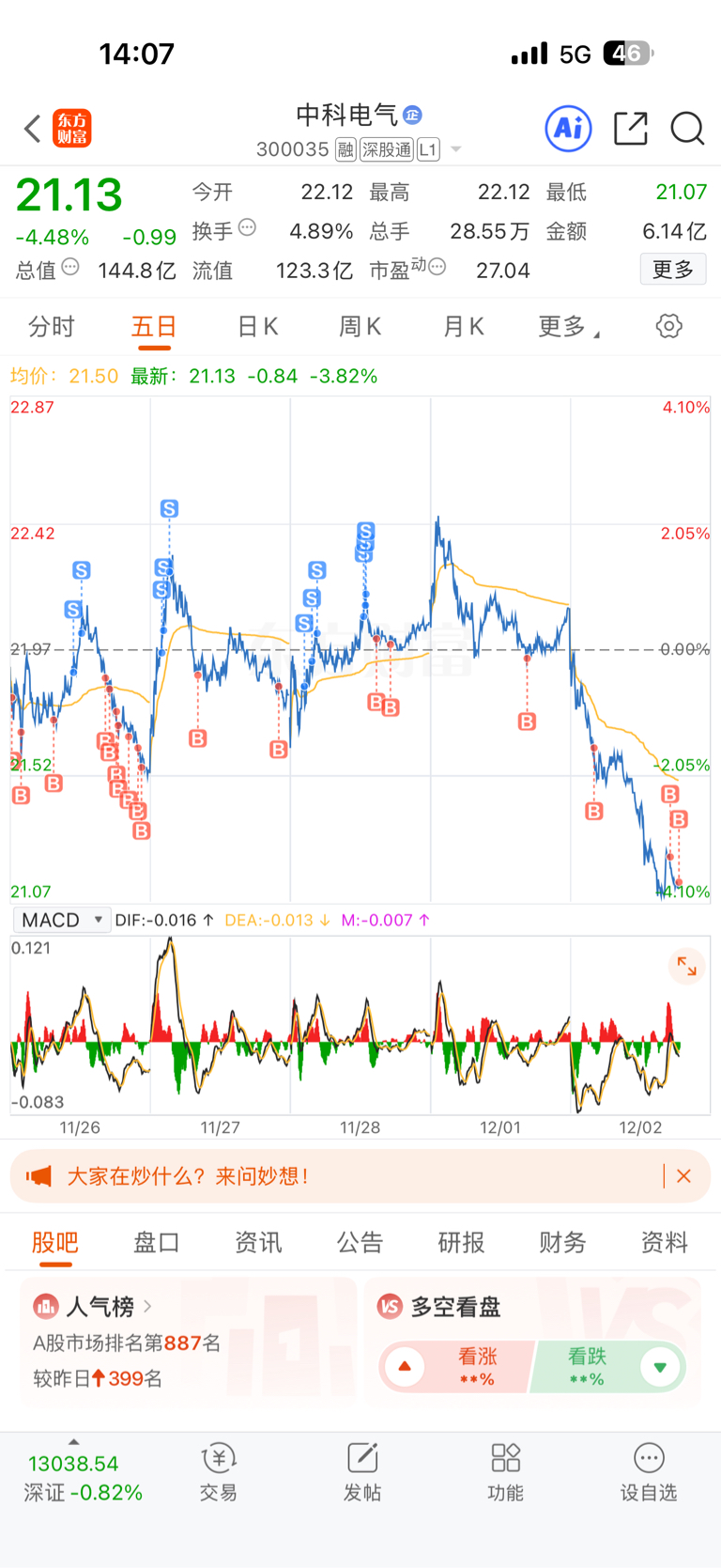 $中科电气(SZ300035)$ 昨天忘记卖了