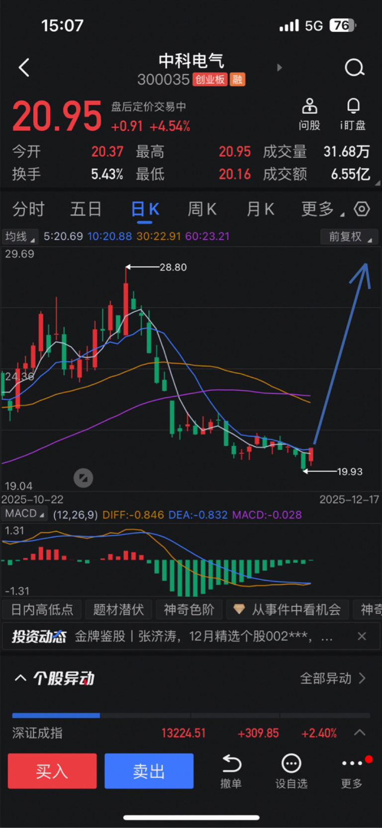 $中科电气(SZ300035)$ 触底拉升!剑指60!