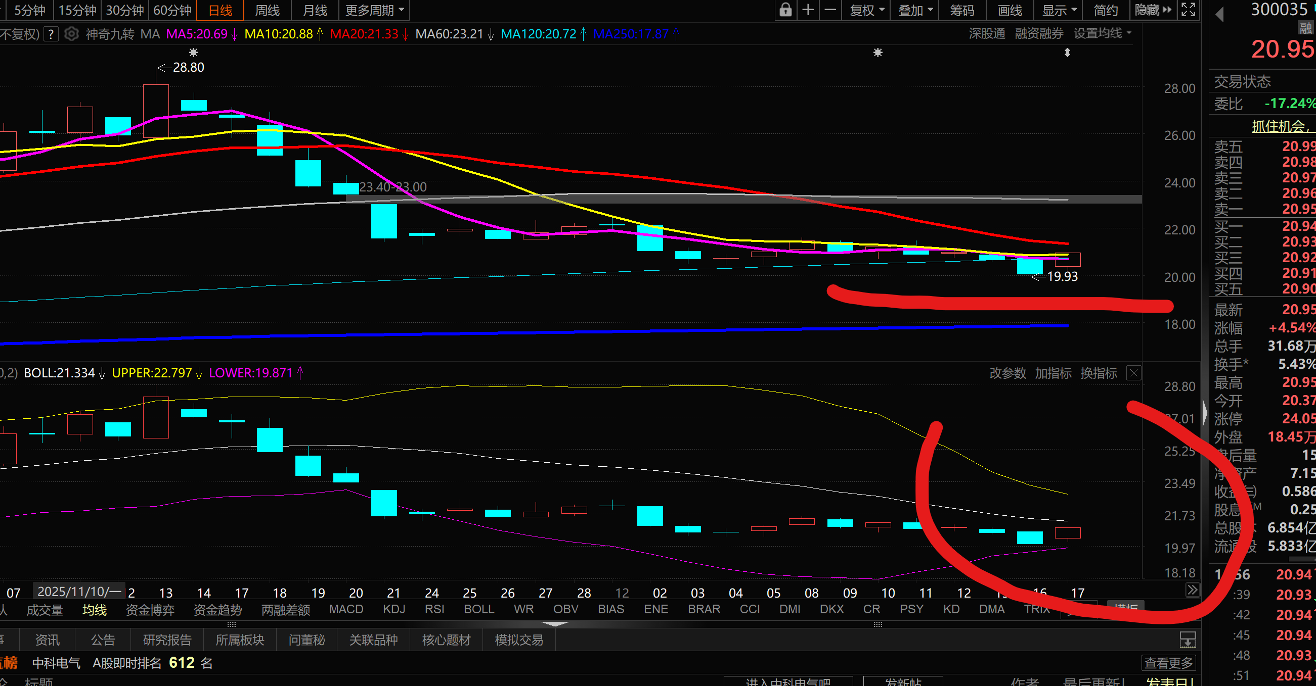 从28.8一路下跌被均线压制 现在均线基本粘合的差不多了 20日的压力线 已经下到 21.33 接近第二个30分钟走势中枢下轨道 21.54 这波有望 站上 吗