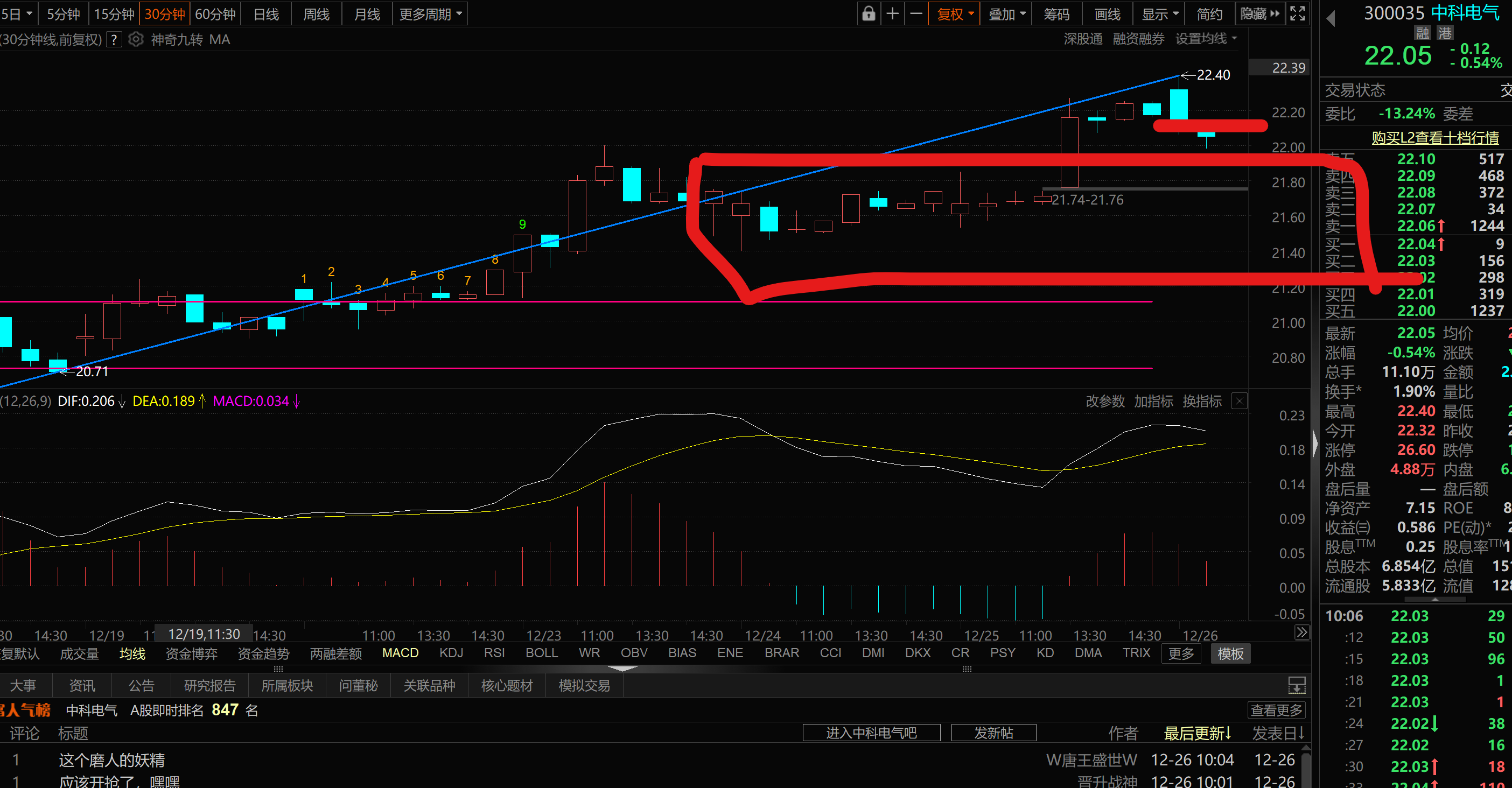 前有压力 下面有 这两天筹码支撑区域 。等 30分钟回调一笔