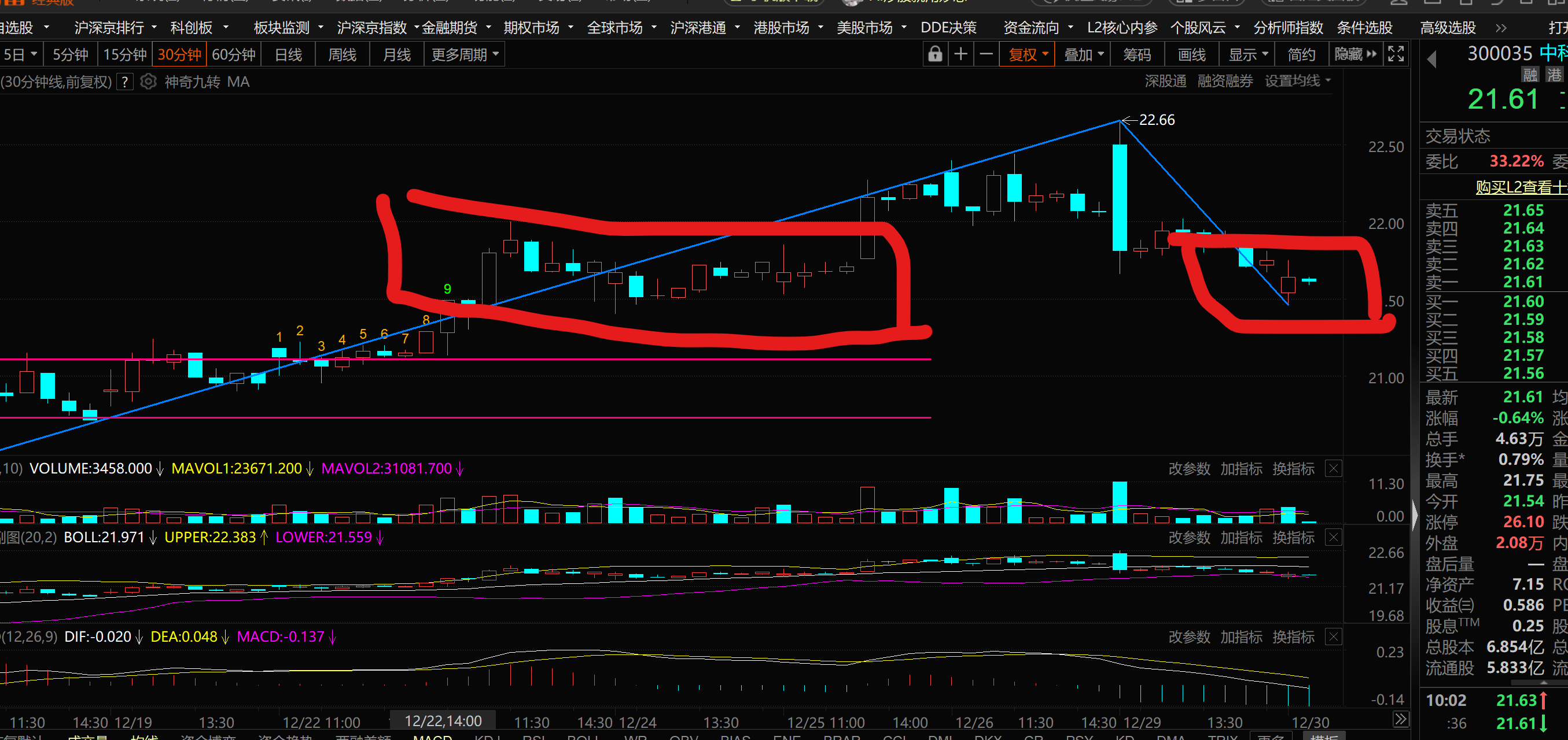 5分钟前面有横盘整理 走势中枢支撑