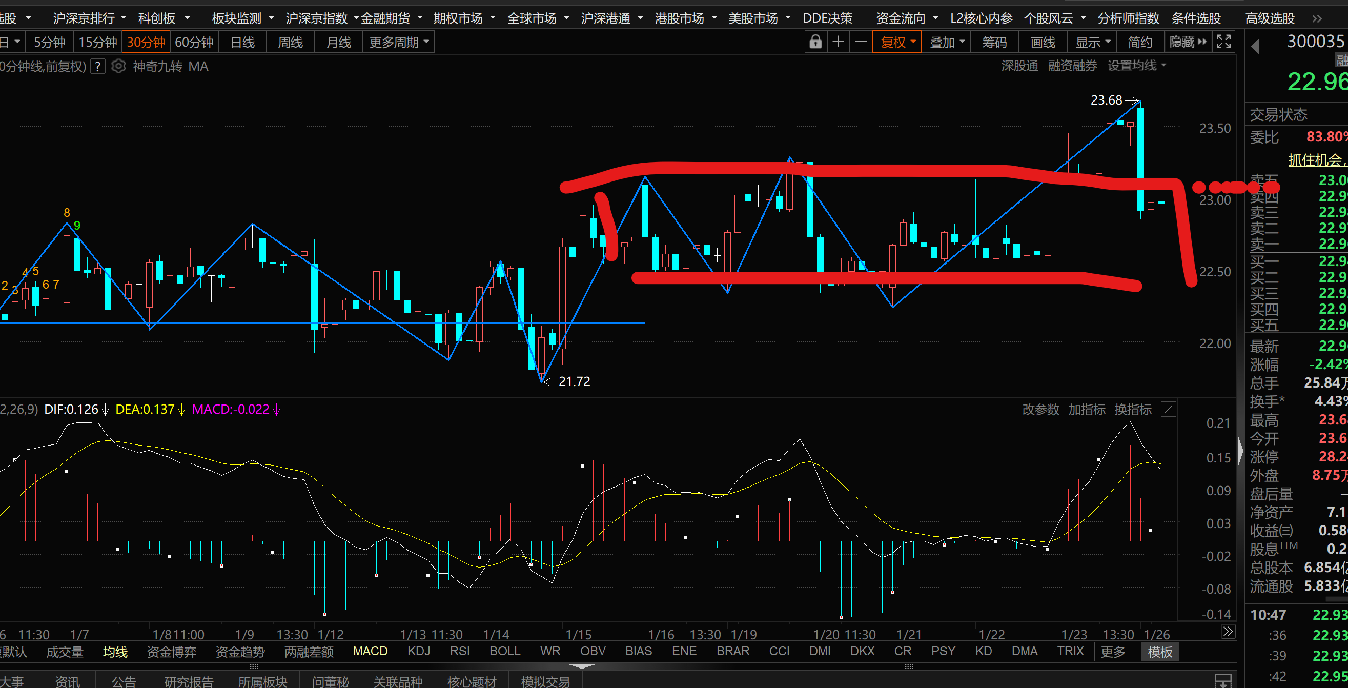 看小级别去做 控制仓位就可以了 两手准备 一手是 5分钟 一手做 30分钟 。