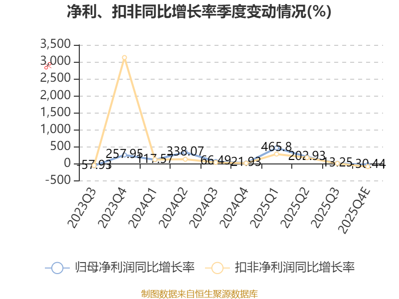 此外,考虑到公司已于2025年12月26日完成控股子公司湖南中科星城控股有限公司股权的回购以及相关工商变更事宜,因此,本年度深创投新材料基金持有的中科星城控股75%股权期间计提的其他非流动负债利息支出7621.33万元于期末已结算完毕,并于四季度作为经常性损益列报,由此致使扣除非经常性损益后的净利润同比增幅相对偏小。