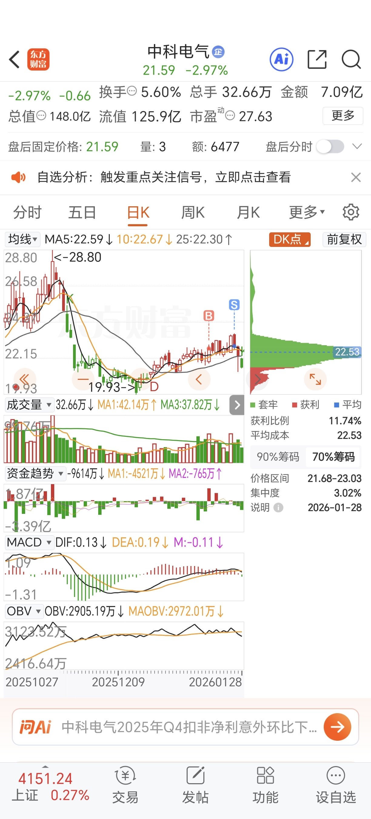 $中科电气(SZ300035)$ 纪念一下没有赚到钱就跑路的股票。几次上冲,主力都没有拉,盼望着一根大阳,结果是场梦。趋势没有走出来,呆在这里也没有什么意思。果然清仓,奈何砸的太快,啥都没有捞着。追高有色,又被揍了一顿,一顿割,追高开板的豫光金铅,算是成功,而走势不强的恒邦股份,拿高了。今天的走势都算不错,吃了一口。