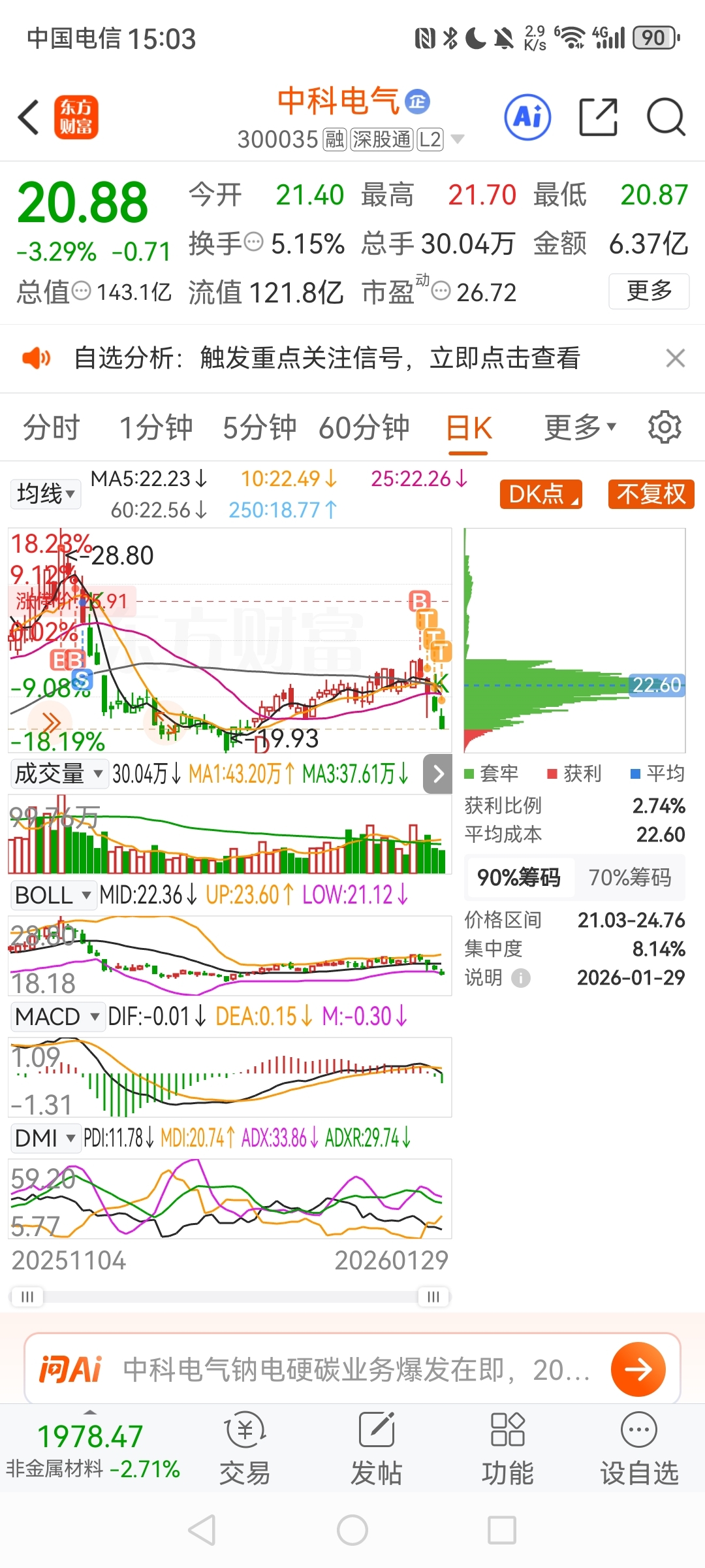 $中科电气(SZ300035)$ 两次,都是最高那天进的,然后进去后,没有一天会红。。。也是神奇了,与我无缘。。
