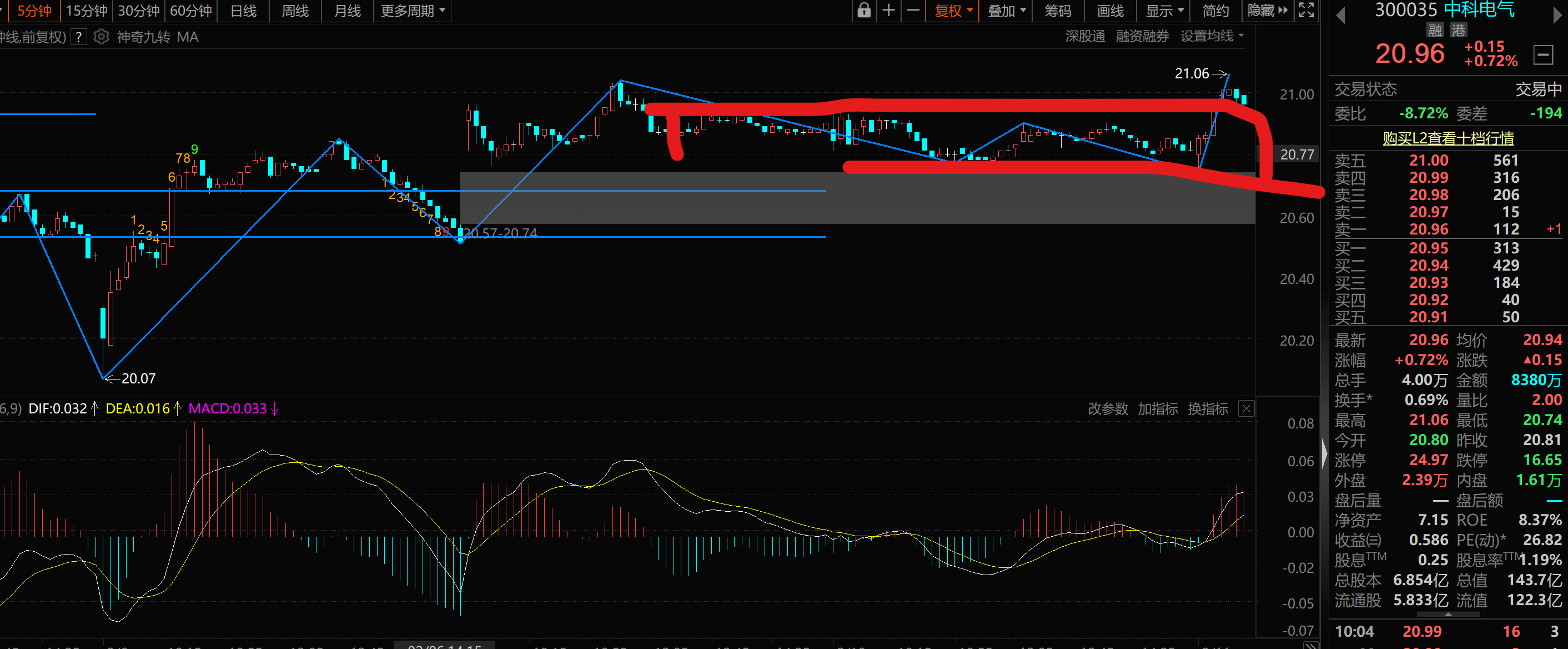 就是 5分钟 第二个上涨走势中枢震荡 把握节奏