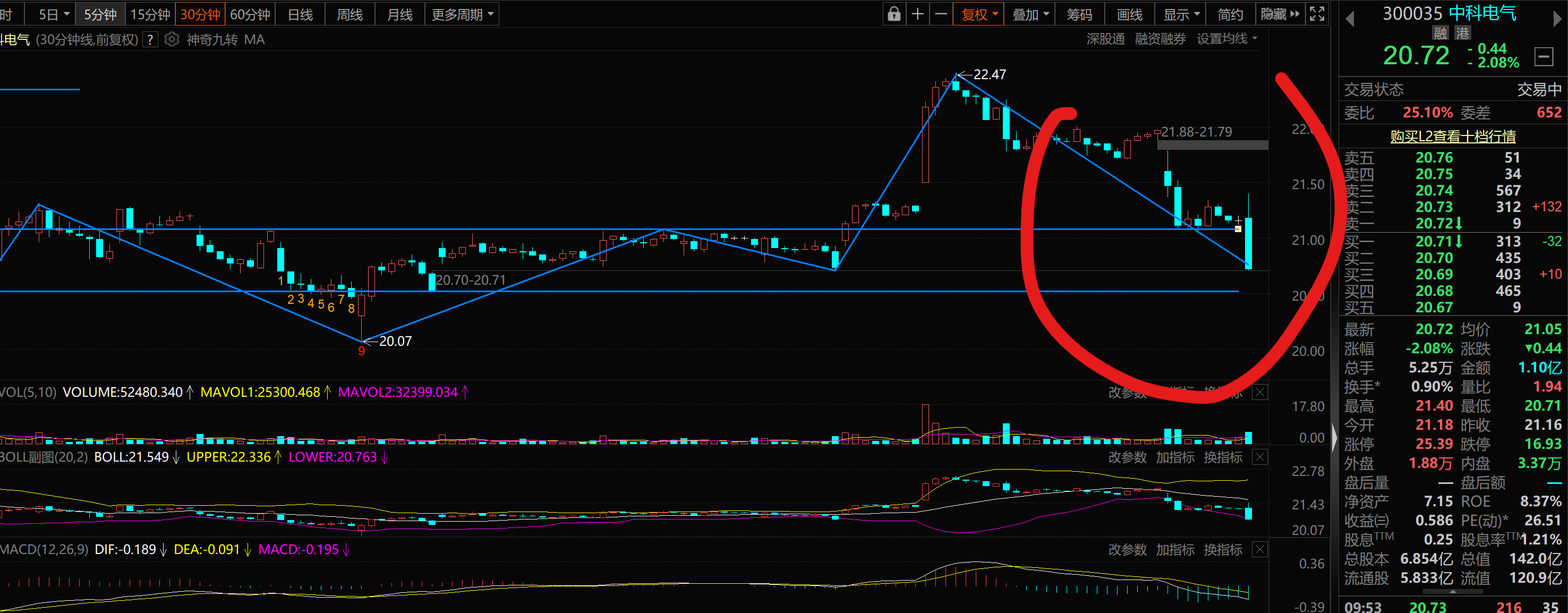 下沿 20.5 进入盘整中枢 昨天说了 没想到 这么快