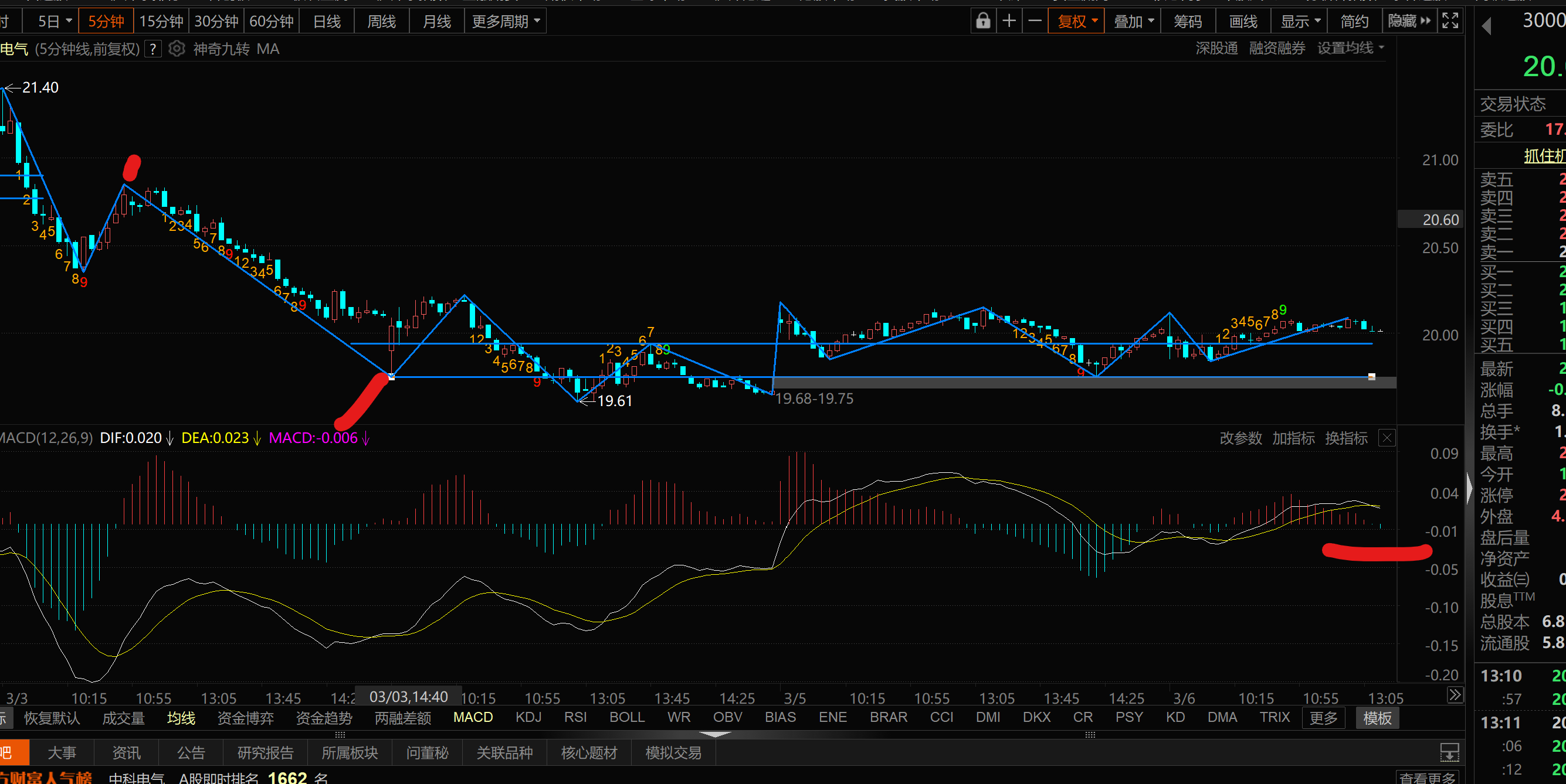这个五分钟下跌中枢 上沿一直盘 没量走不出 离开段