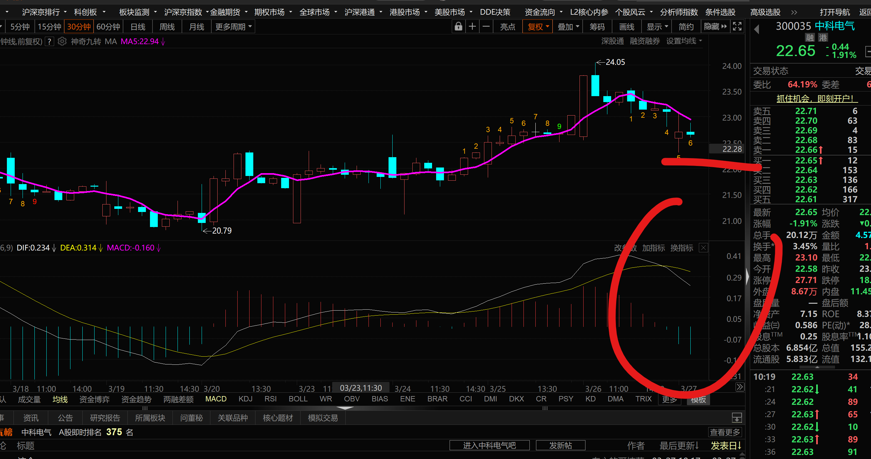 昨天上涨 给出过 5分钟2卖 macd跌幅扩大