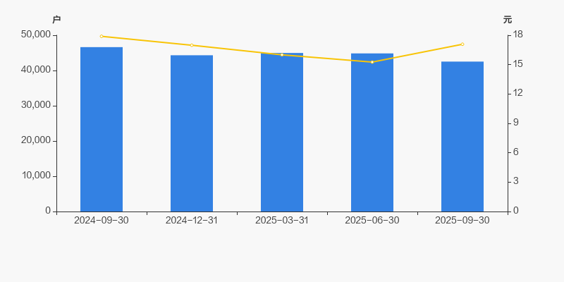 截至2025年9月30日,公司最新总股本为4.93亿股,其中流通股本为4.38亿股。户均持有流通股数量由上期的9776股上升至1.03万股,户均流通市值17.61万元。