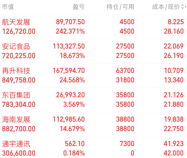 航天发展:今天非常超预期了,直接大幅跳空高开秒板,作为板块的大核心能这么走,就知道板块无忧了。昨天我们选择大幅减仓,核心目的就是规避不确定性风险。该拿的利-润已经落袋,大禸到手就足够了,后面把握不了的那一段,也没什么可遗憾的。市场永远不缺机会,利-润也吃不完。我们要做的,是用成熟、可靠的模式,安全地吃下属于自己的那一段即可。北哥后面还会持续为偏好小波段的朋友,去挖掘这种“走得稳、涨得久”的标。当前剩余的小仓位,就按计划继续格局到最后。$航天发展(SZ000547)$