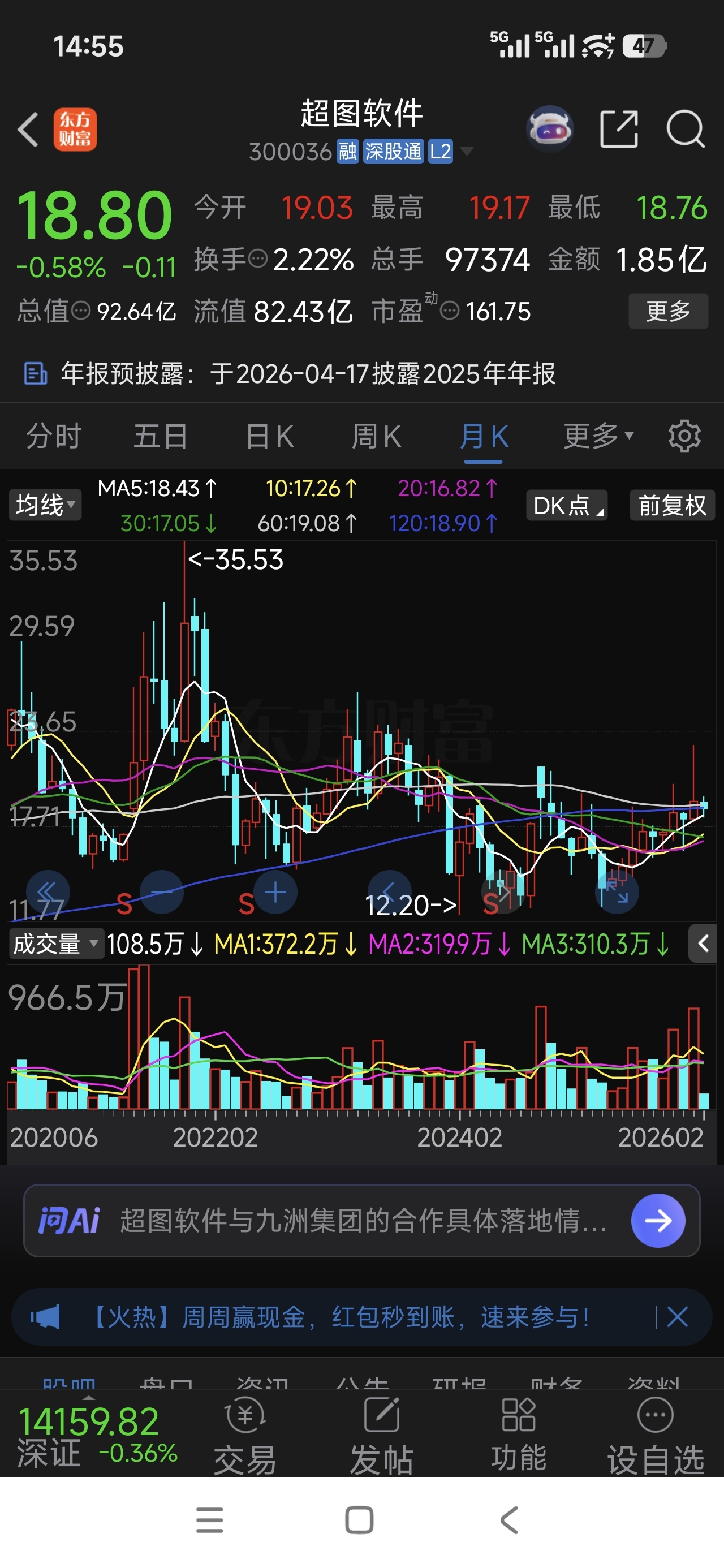 $超图软件(SZ300036)$ 十年的成本价就在18.9元。