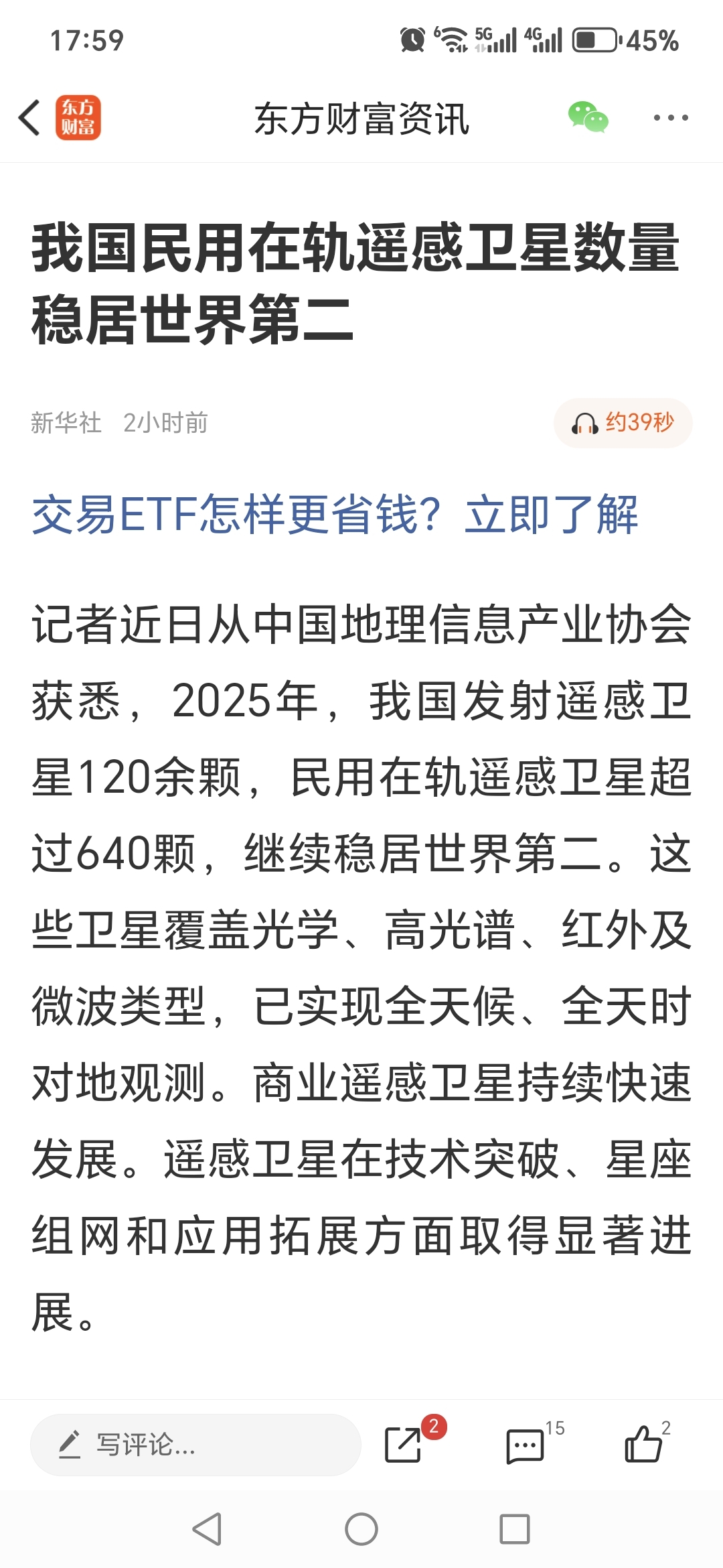 我国民用在轨遥感卫星数量稳居世界第二