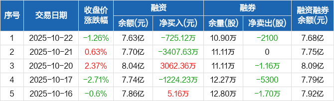新宙邦:融资净偿还725.12万元,融资余额7.63亿元(10-22)