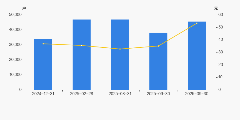 2024年12月31日至今,公司股东户数显著增长,区间涨幅为34.77%。2024年12月31日至2025年9月30日区间股价上涨44.43%。