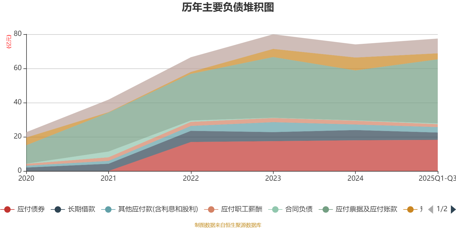 负债重大变化方面,截至2025年三季度末,公司应付票据及应付账款较上年末增加28.2%,占公司总资产比重上升3.65个百分点;短期借款较上年末减少53.57%,占公司总资产比重下降2.39个百分点;长期借款较上年末减少28.28%,占公司总资产比重下降1.07个百分点;应付债券较上年末增加1.36%,占公司总资产比重下降0.36个百分点。