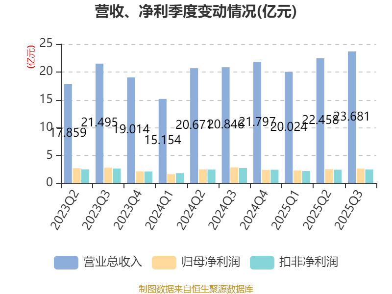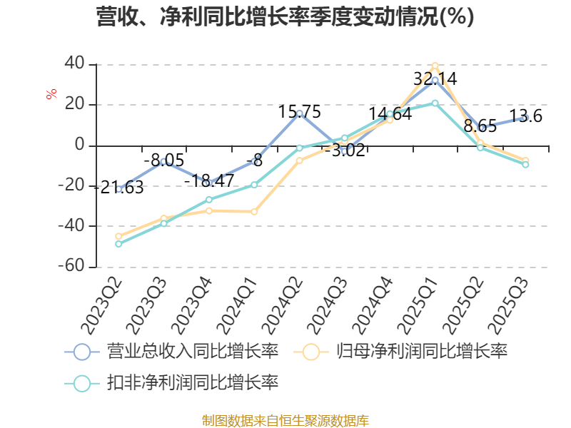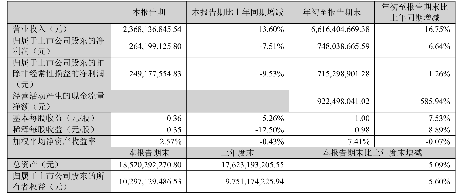 2025年前三季度,公司经营活动现金流净额为9.22亿元,同比增加11.12亿元;筹资活动现金流净额-10.19亿元,同比减少6.26亿元;投资活动现金流净额-11.14亿元,上年同期为-13.38亿元。