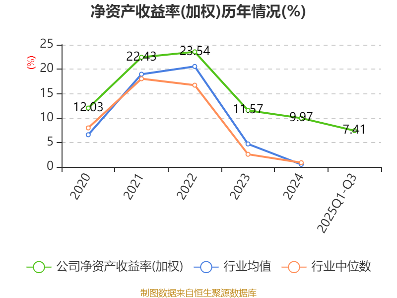 盈利能力方面, 2025年前三季度公司加权平均净资产收益率为7.41%,同比下降0.07个百分点。公司2025年前三季度投入资本回报率为5.95%,较上年同期上升0.37个百分点。