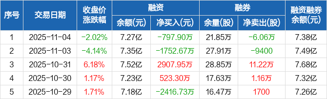 新宙邦:融资净偿还797.9万元,融资余额7.27亿元(11-04)