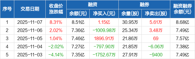 新宙邦:融资余额8.51亿元,创近一年新高(11-07)