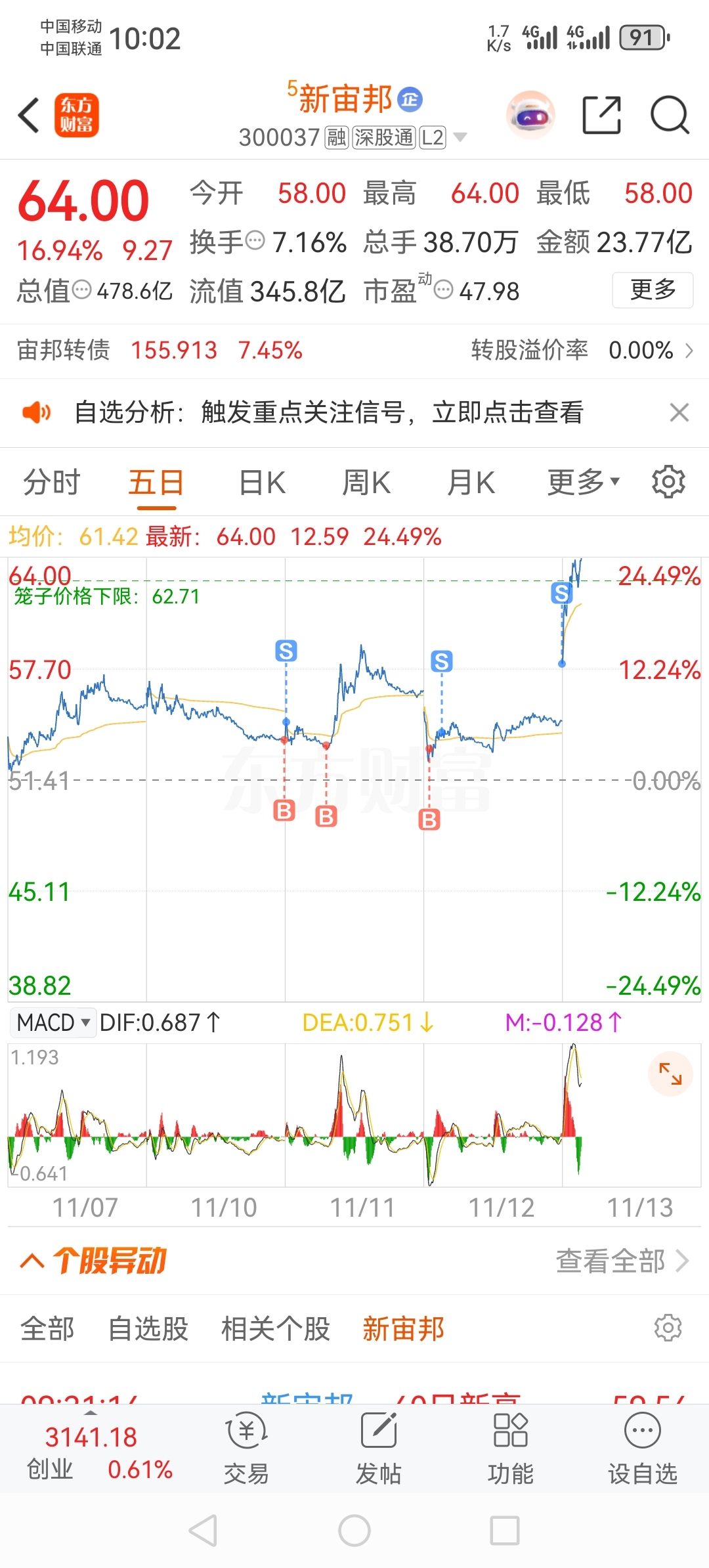 $新宙邦(SZ300037)$ 负溢价出来了 准备卖正股 换转债