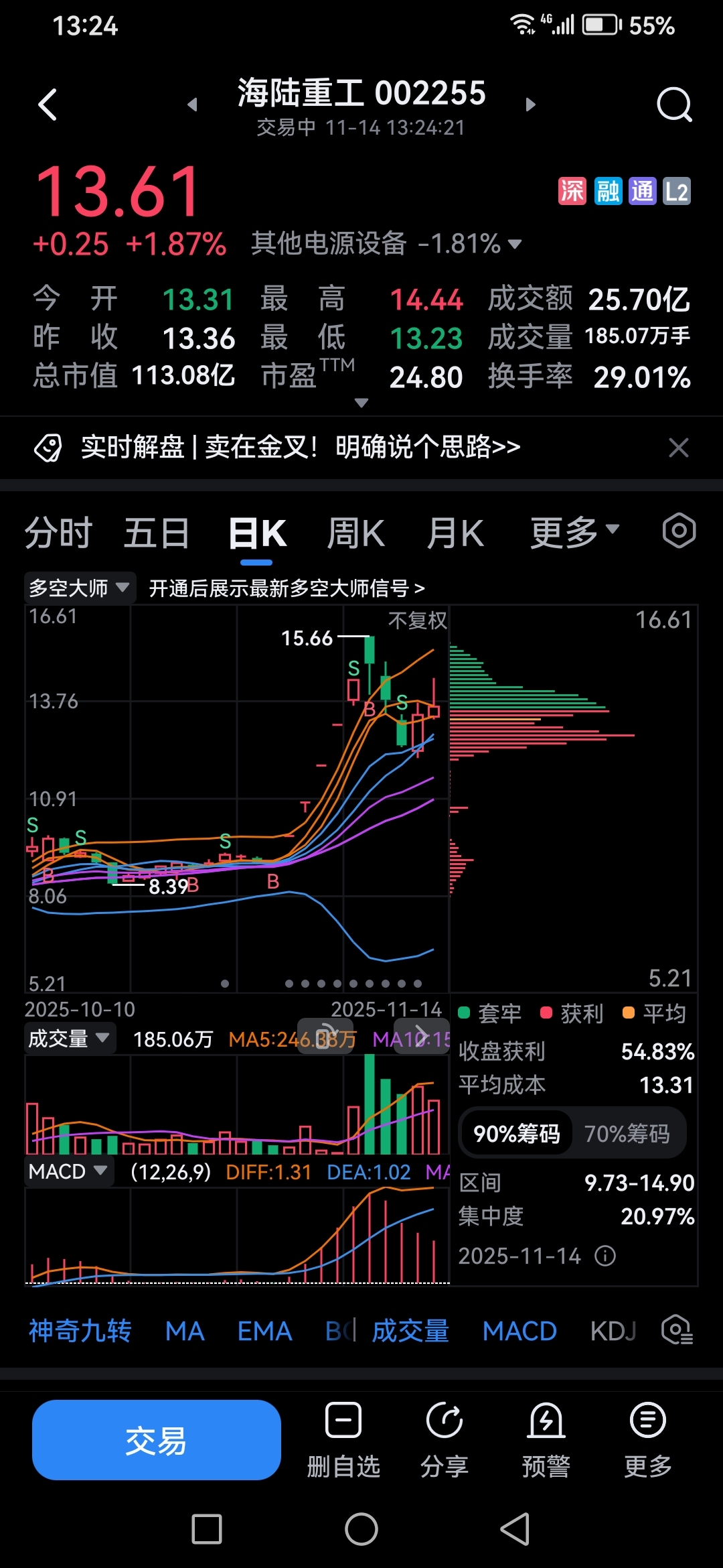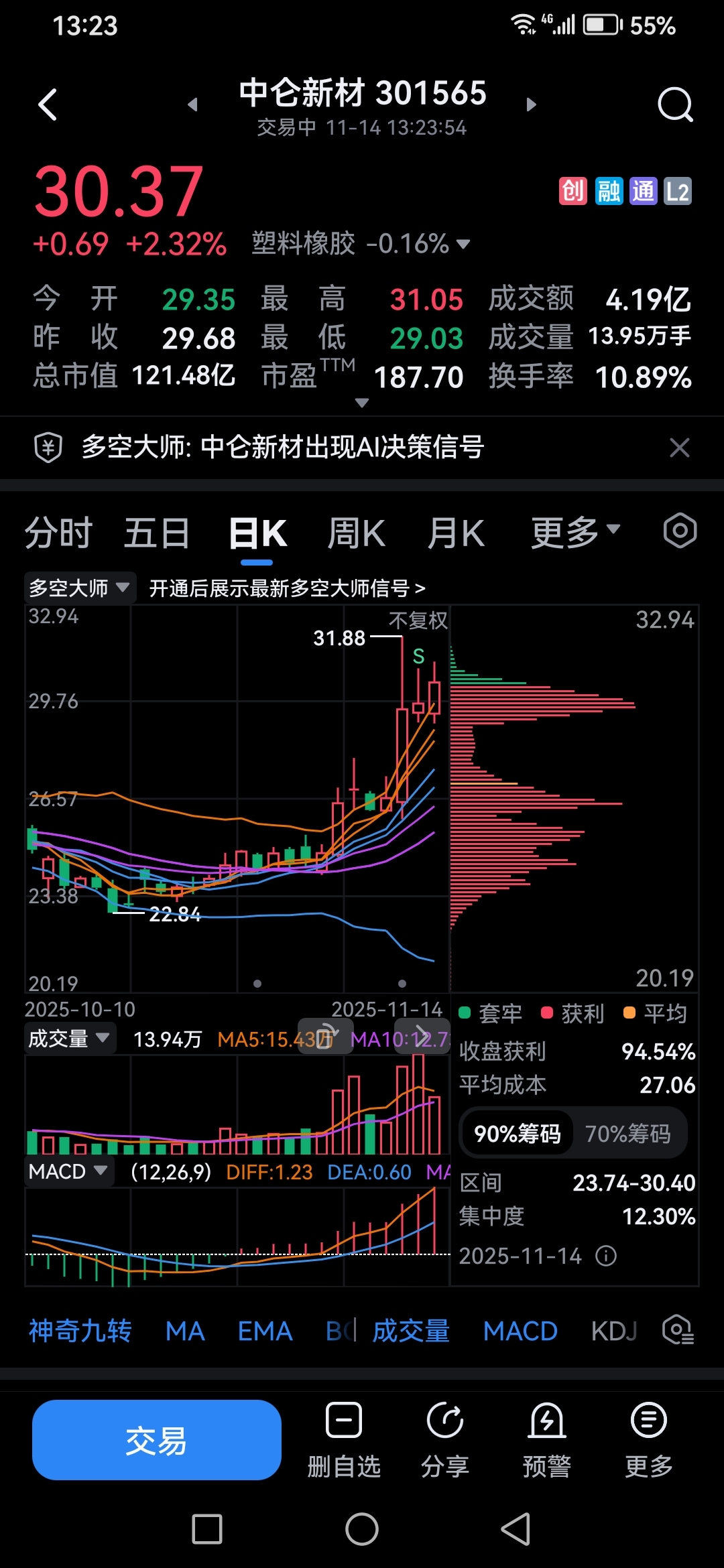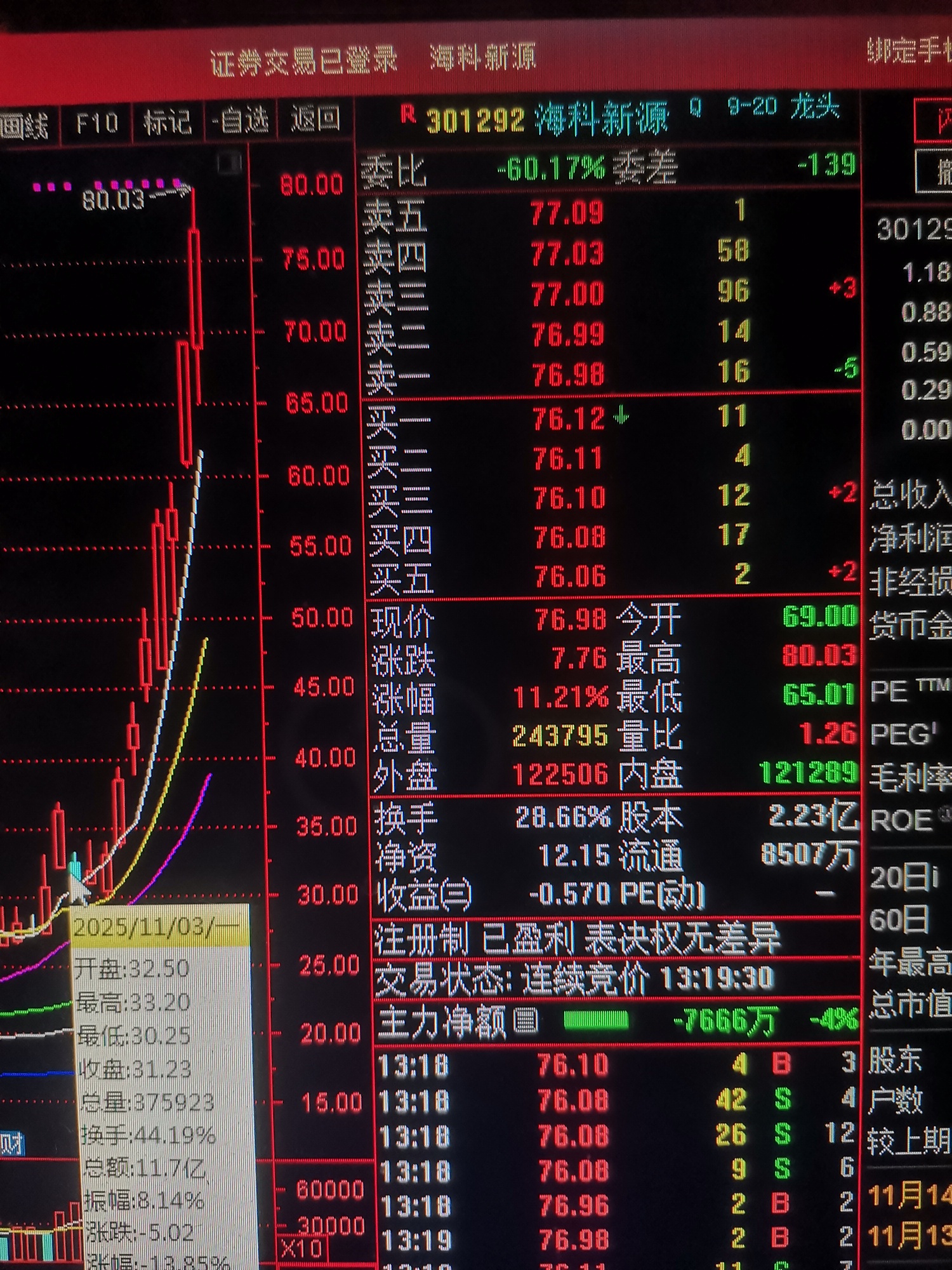 11月14号交易记录新宙邦海科新源海陆重工富祥药业铜冠铜箔浮日股份海峡创新香农芯