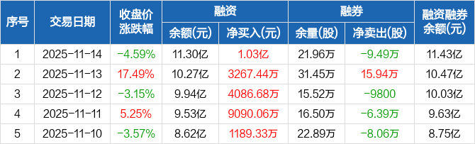 新宙邦:融资余额11.3亿元,创近一年新高(11-14)