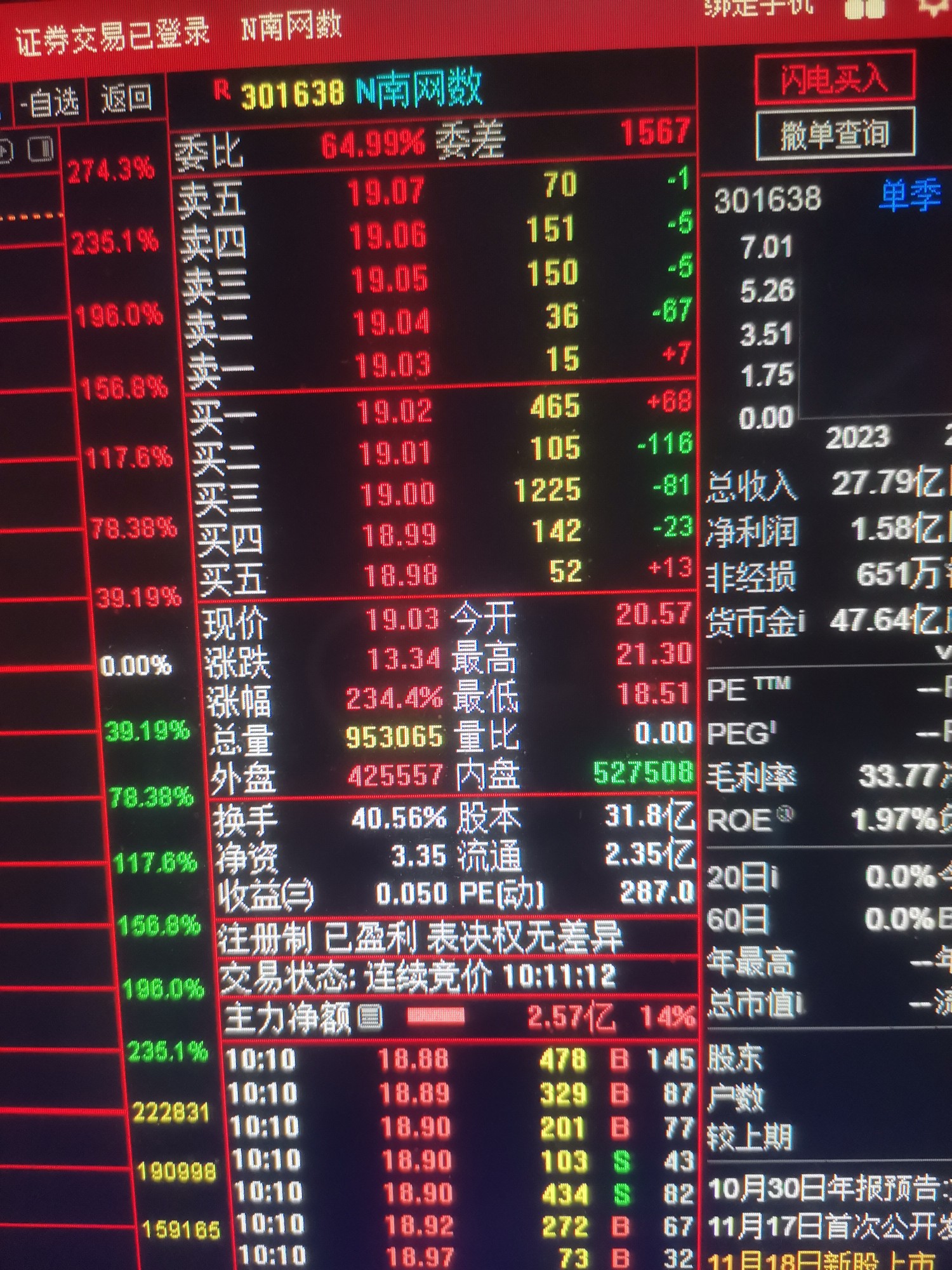 今天上市的小盘低价新股软件新龙头301638N南网数秒买入