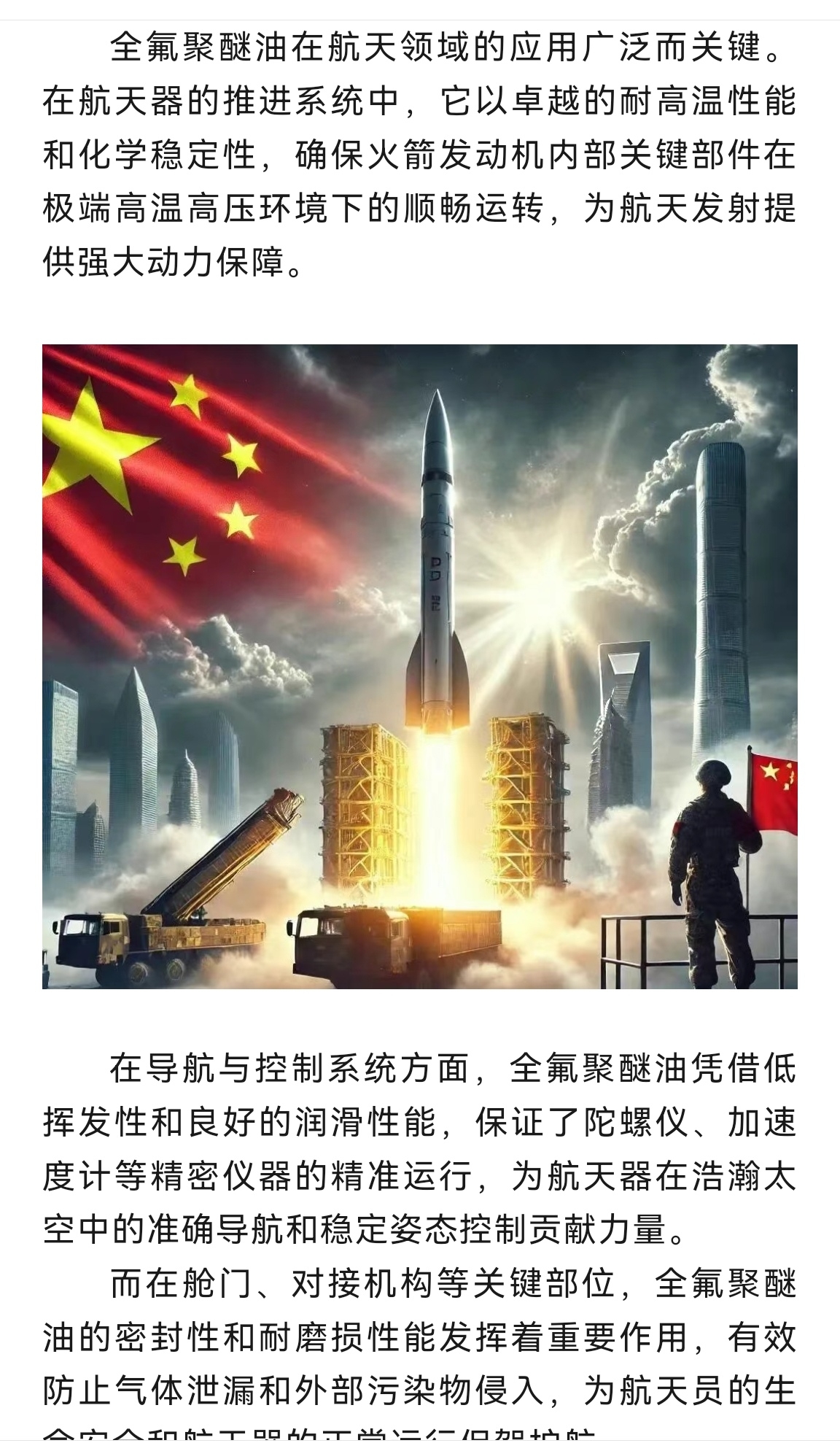 新宙邦是商业航天领域的非常稀缺标的,预期差极大。全氟聚醚润滑油是太空航天器、卫星
