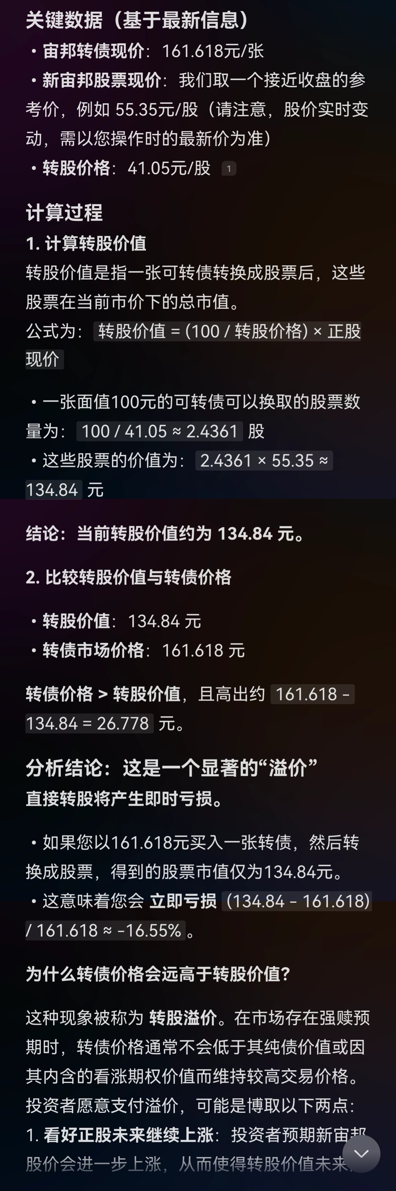 $新宙邦(SZ300037)$ 看好正股,转债溢价,如果债转股亏损。