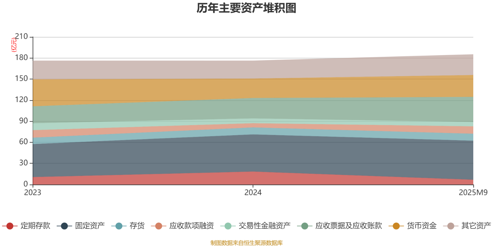 资产重大变化方面,截至2025年9月,公司定期存款较上期末减少63.19%,占公司总资产比重下降6.78个百分点;应收票据及应收账款较上期末增加23%,占公司总资产比重上升2.81个百分点;应收款项融资较上期末增加74.46%,占公司总资产比重上升2.25个百分点;长期股权投资较上期末增加133.03%,占公司总资产比重上升1.74个百分点。