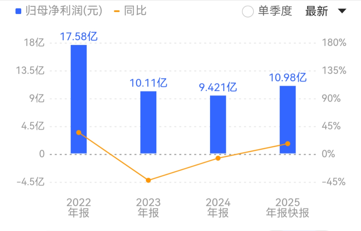 业绩方面,新宙邦在经历连续两年净利润下滑后,于2025年成功实现营业收入与净利润的双增长。业绩快报显示,公司全年实现营业收入96.39亿元,同比增长22.84%;归母净利润同比增长16.56%至10.98亿元,但仍未达到2022年17.58亿元的峰值水平。