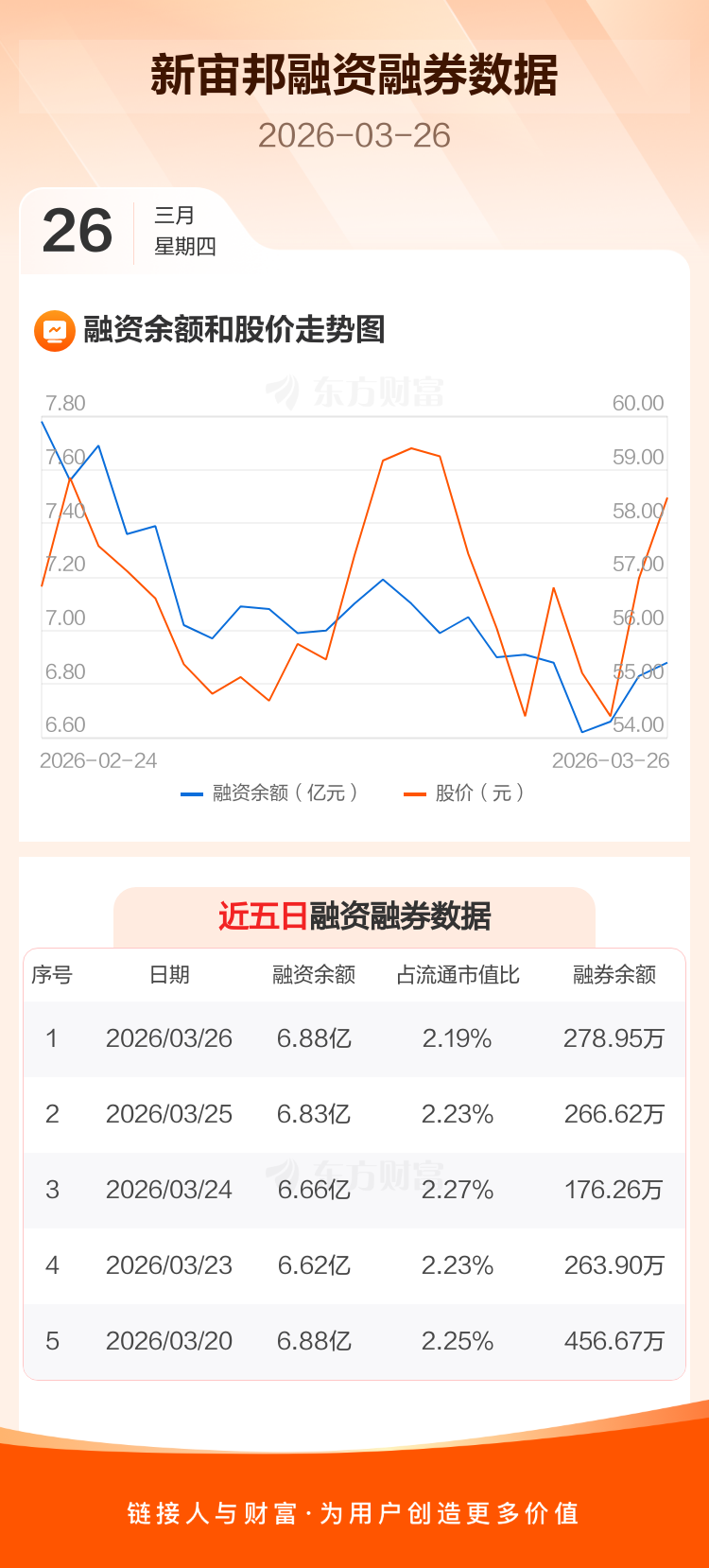 交易所最新数据显示,新宙邦于2026年3月26日获融资买入1.54亿元,融资偿还1.48亿元,当日融资净买入578.33万元。目前,该股融资余额6.88亿,占流通市值比例为2.19%。