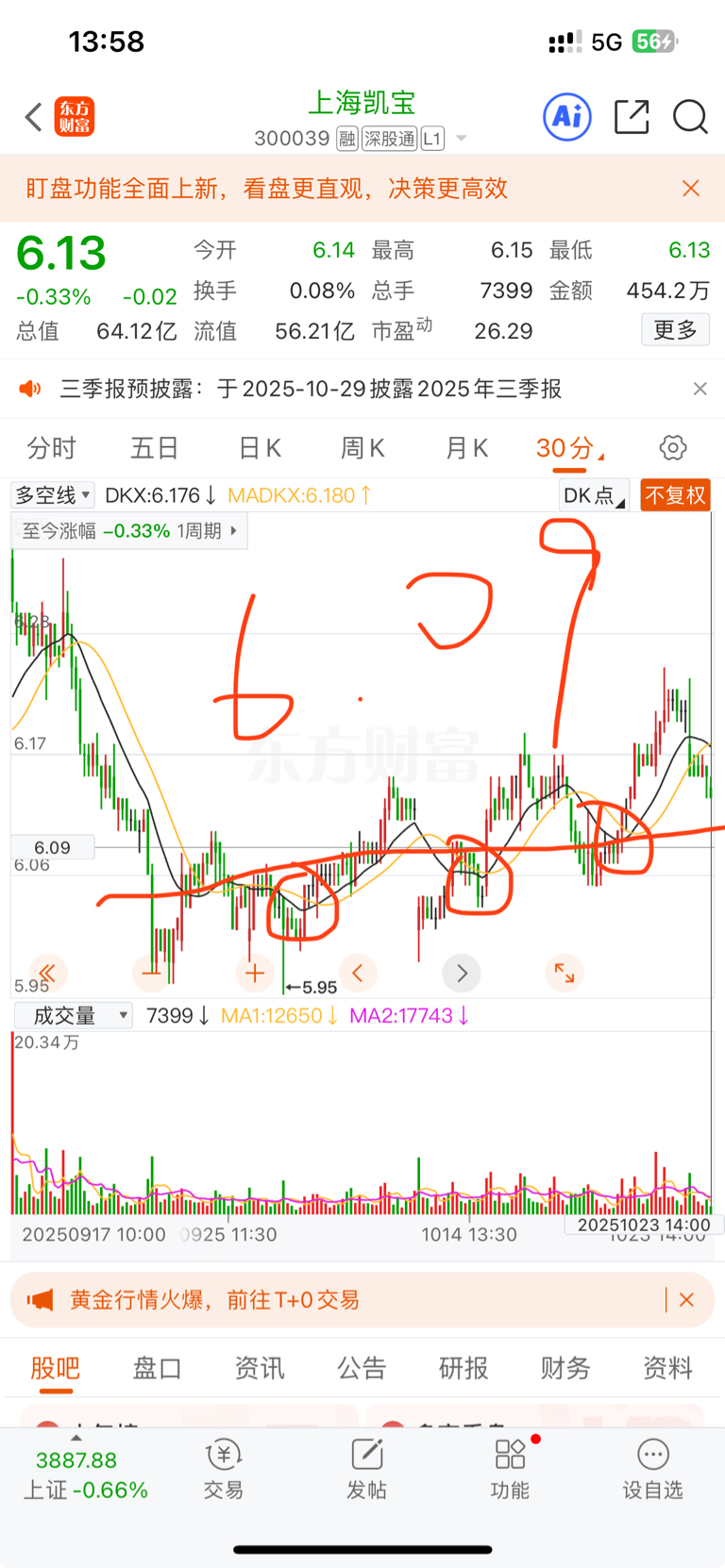 $上海凯宝(SZ300039)$ 看起来是要慢慢打到6.08或者6.09附近。6.11吧我这个位置进。