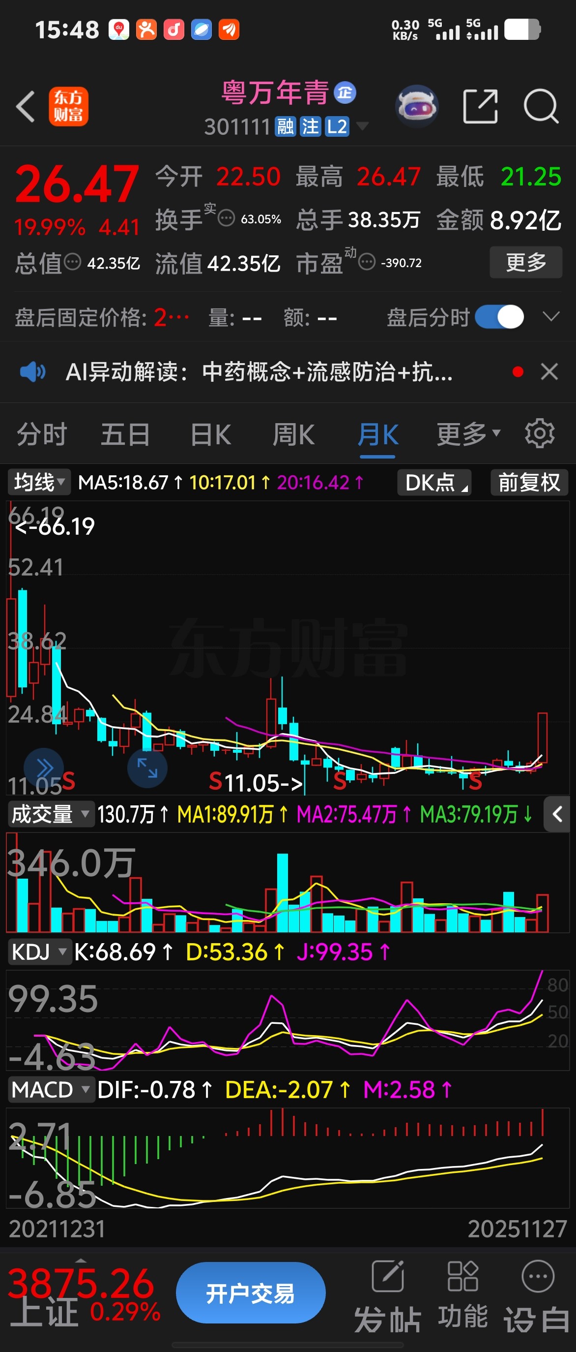 流感来了,也就选了两支低位中药股,粤万年青和它。觉得这货质地相对好点,就选了它。