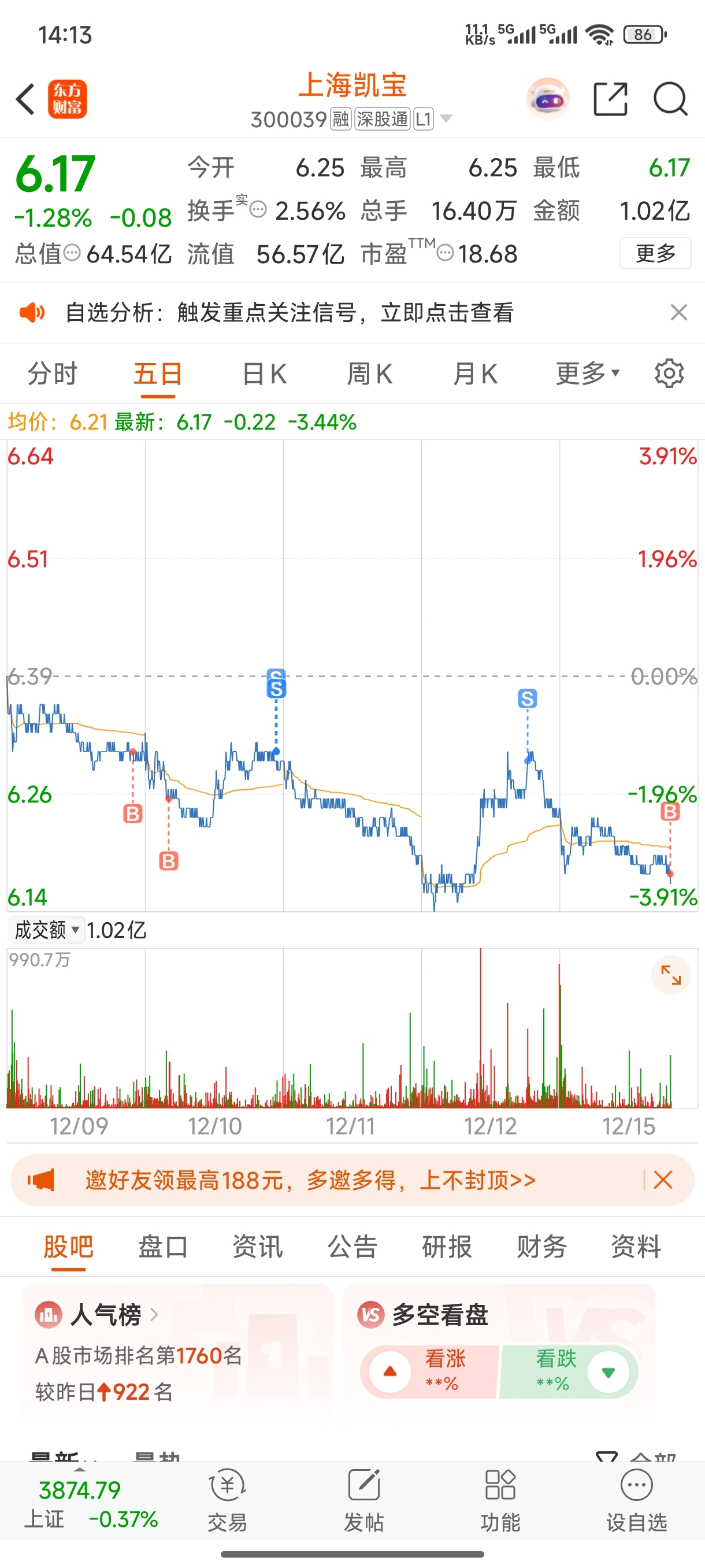 $上海凯宝(SZ300039)$ 凯宝有点性冷淡,再陪你玩几天看看